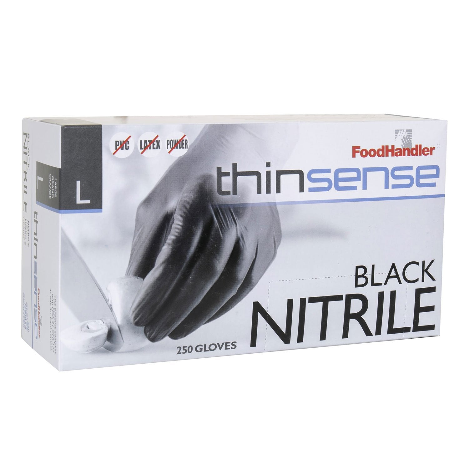 FoodHandler -Thinsense Black Nitrile Gloves, 250 gloves per box