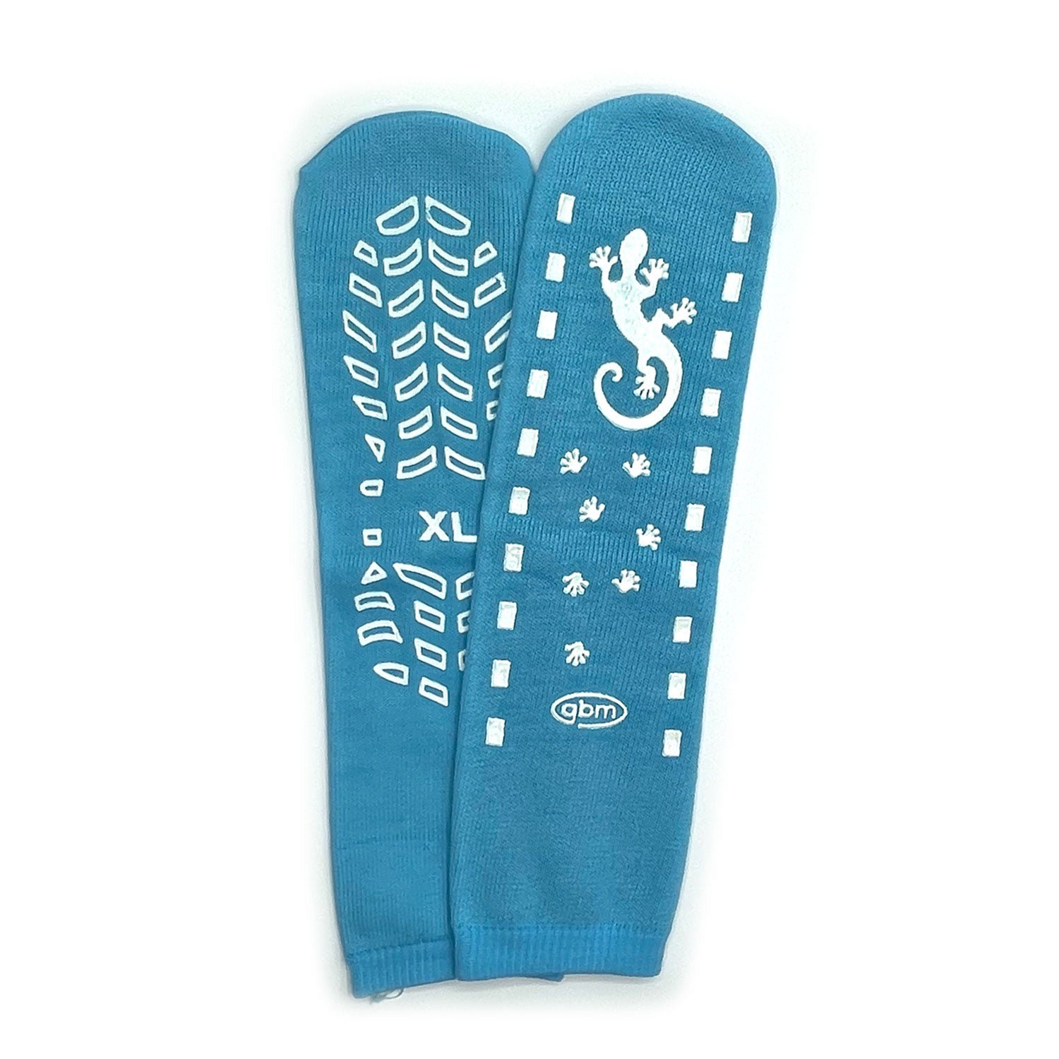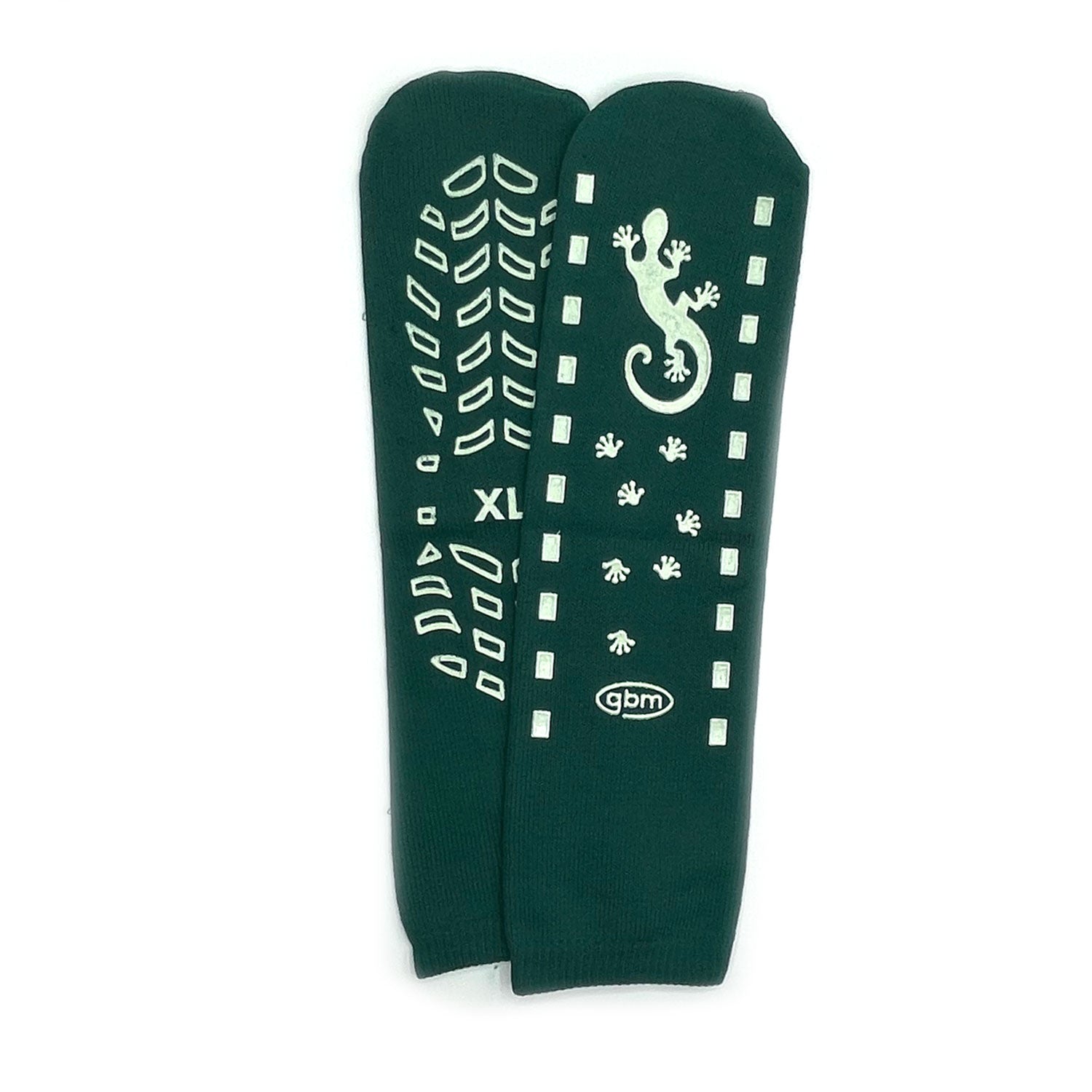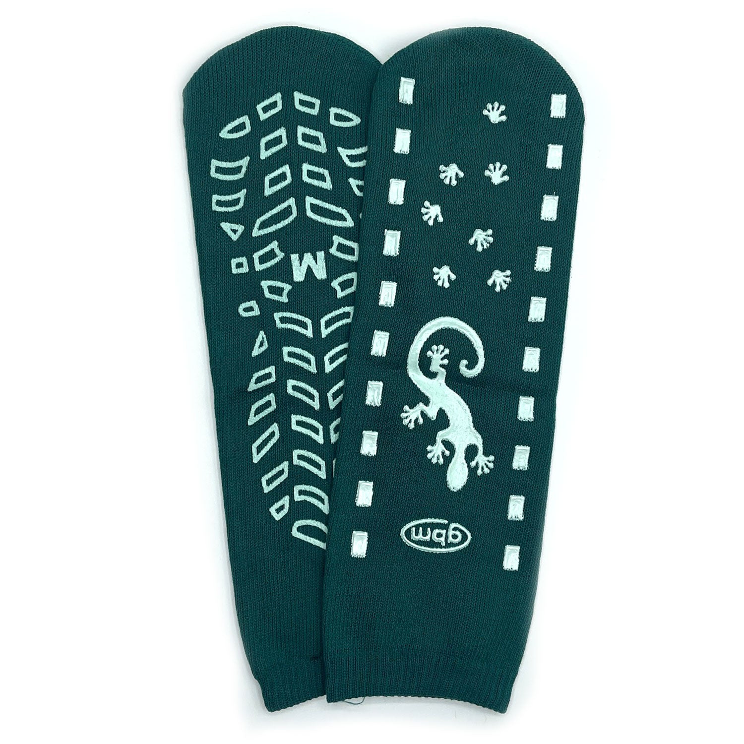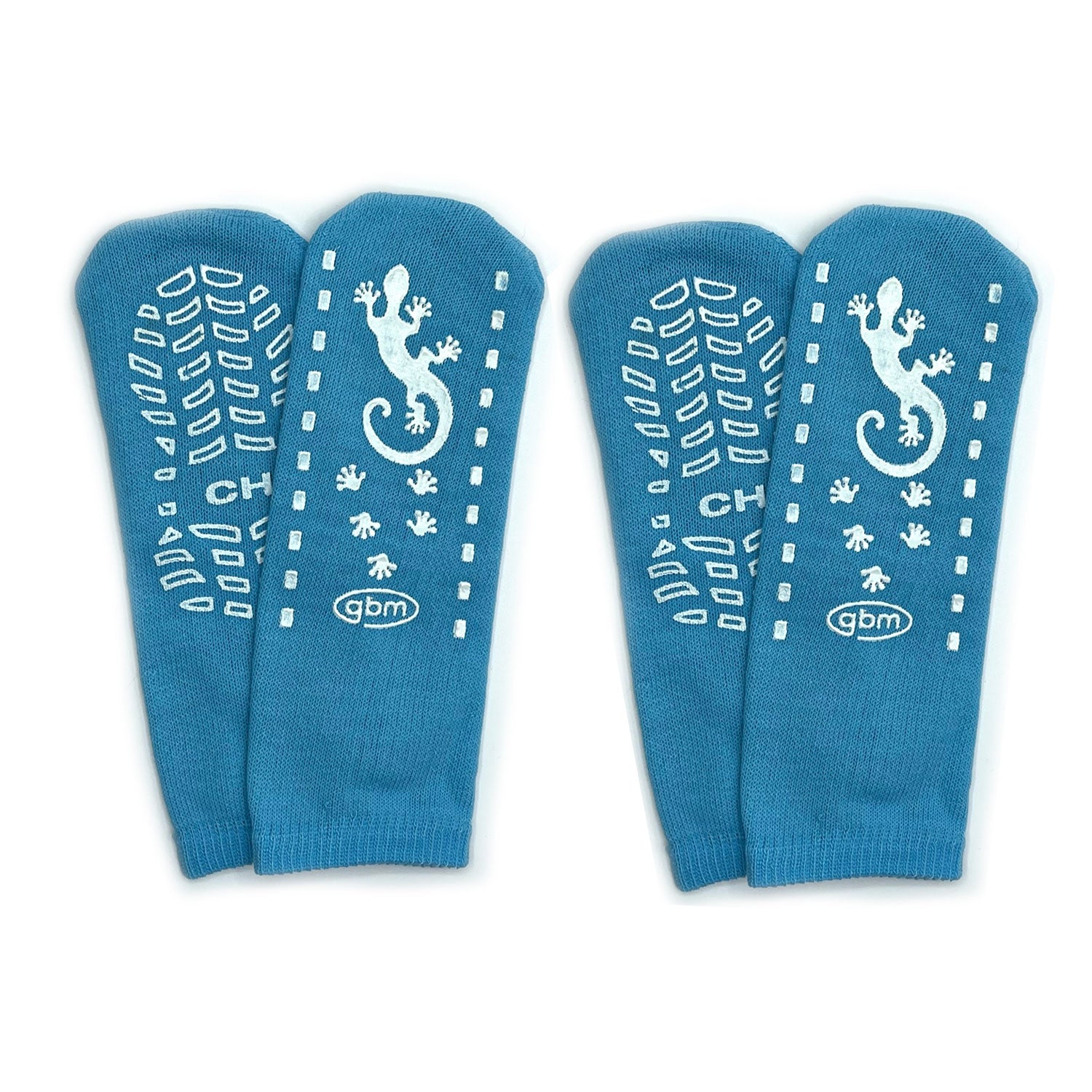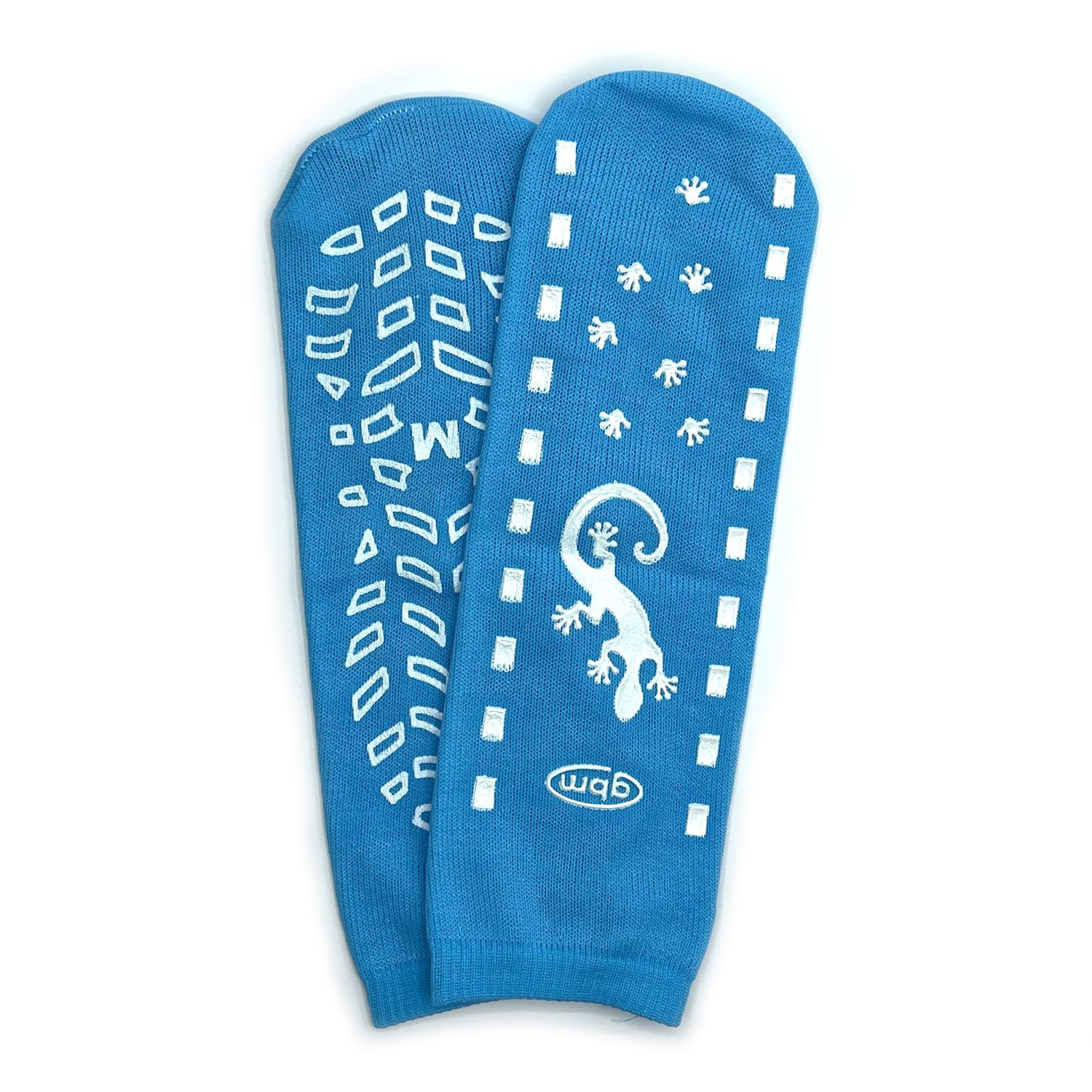 Looking for a set of non-slip socks that can keep you safe and comfortable? Look no further than GBM Geckos! Our double tread non-slip safety socks feature a flexible design and durable construction, making them the perfect choice for anyone who needs to stay steady on their feet. Whether you're headed to the hospital or participating in a yoga class, our non-slip socks are sure to provide reliable support and comfort. Grip socks are recommended to avoid slipping for the elderly, the pregnant, and people in the hospital. These grip socks have an extra-strong, non-skid sticky grip pattern that covers both sides of the sock for universal grip and traction. It provides stability and safety for everyday use at home, as well as enhanced performance for exercises such as yoga, pilates, or barre.