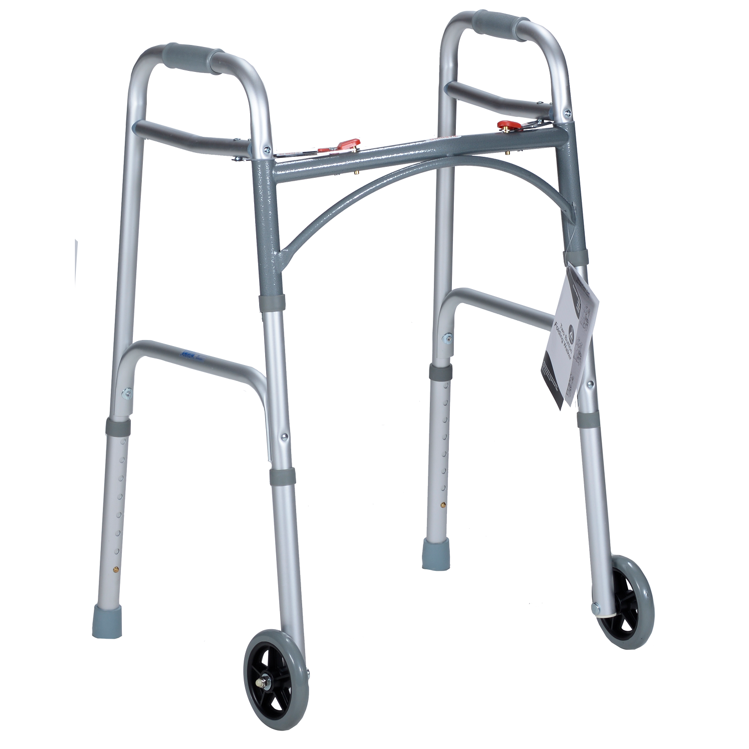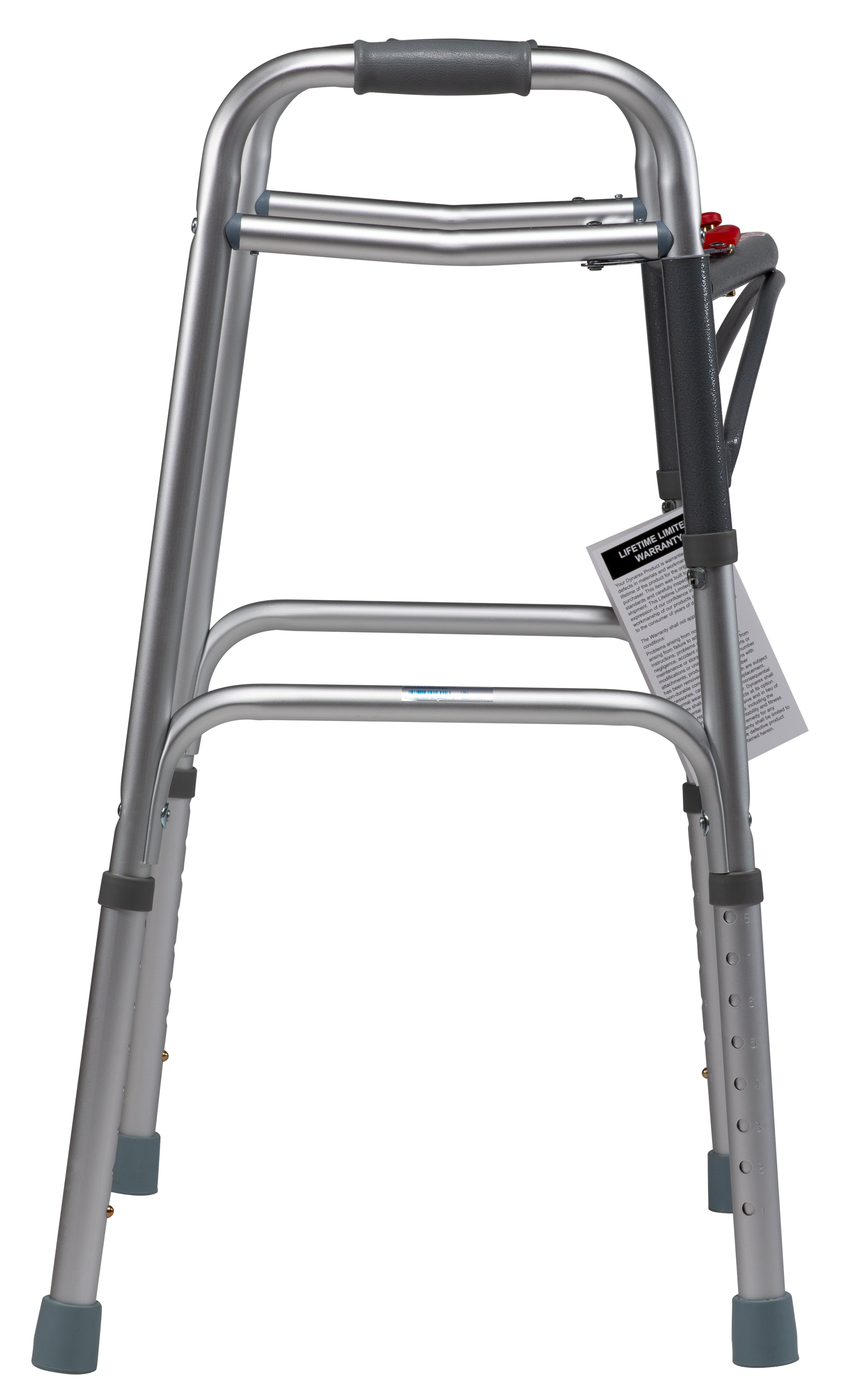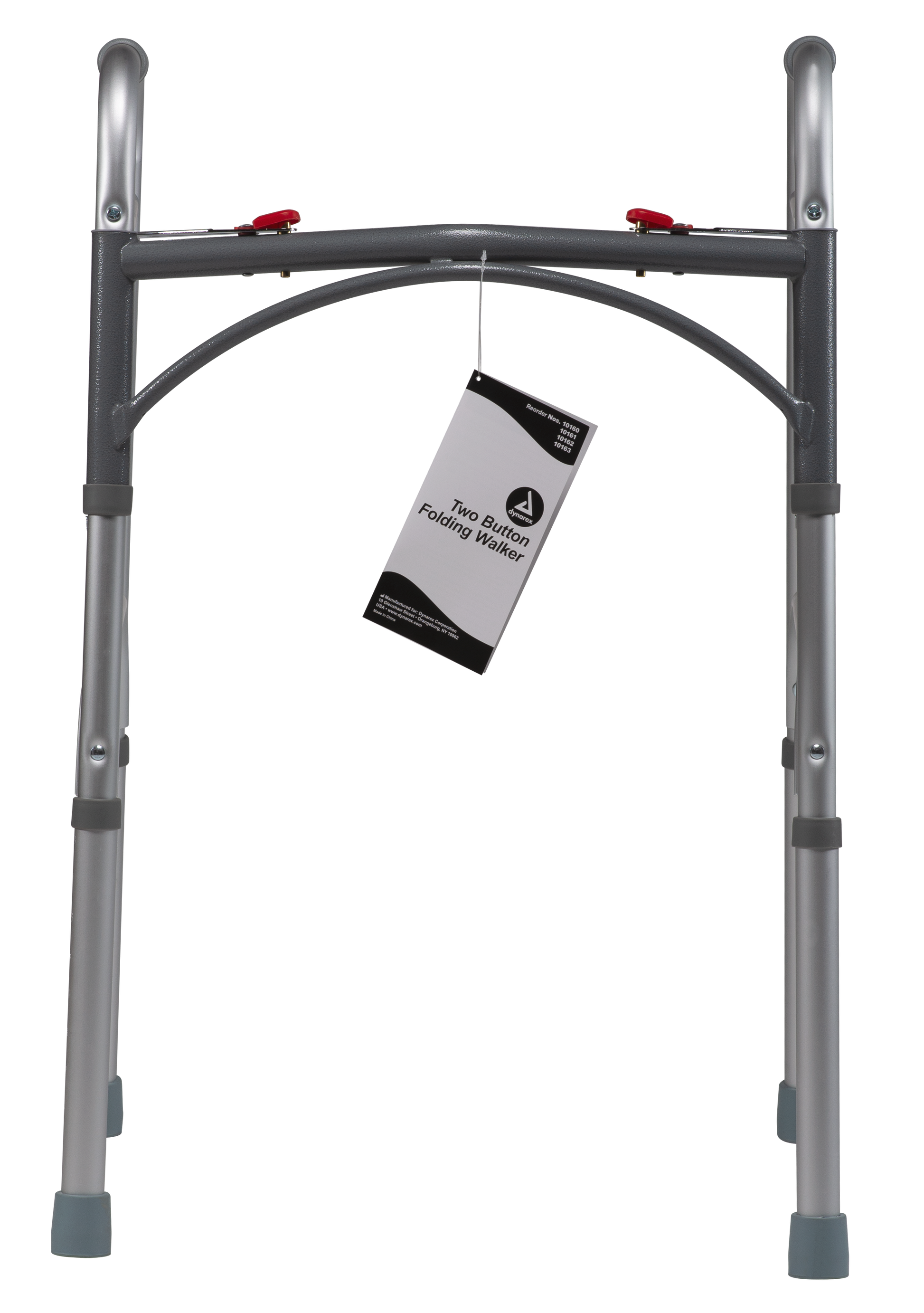 The Dynarex Two-Button Walkers are a safe, dependable solution for those who need a convenient aid while performing daily activities. The walkers open and close with an easy-to-use push button mechanism that may be operated by the user’s fingers or palms, and each side operates independently to allow for easy movement through narrow spaces. The tool-free button allows for height adjustments, raising and lowering the walker to accommodate any individual. The design is also inclusive of contoured handgrips for added patient comfort.
