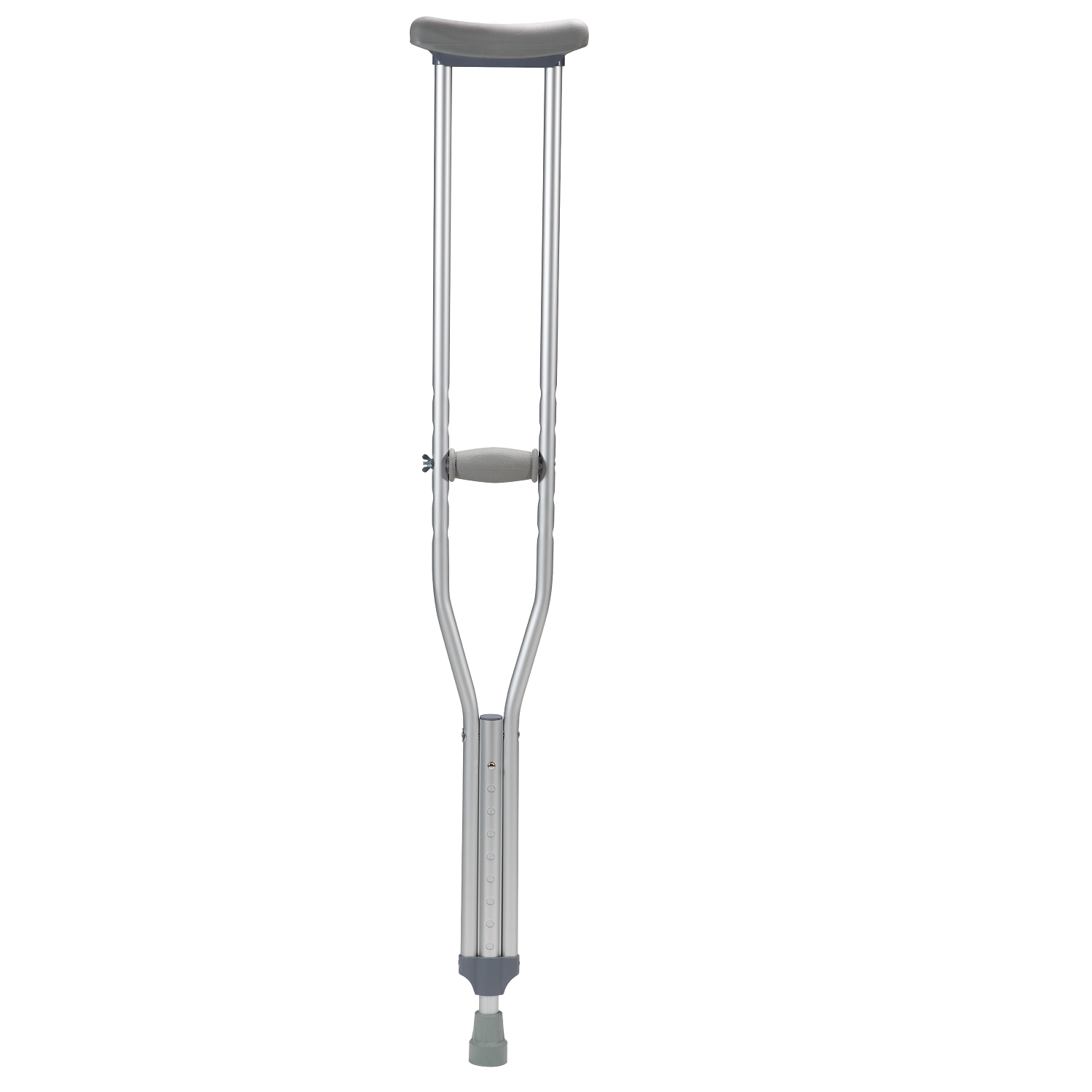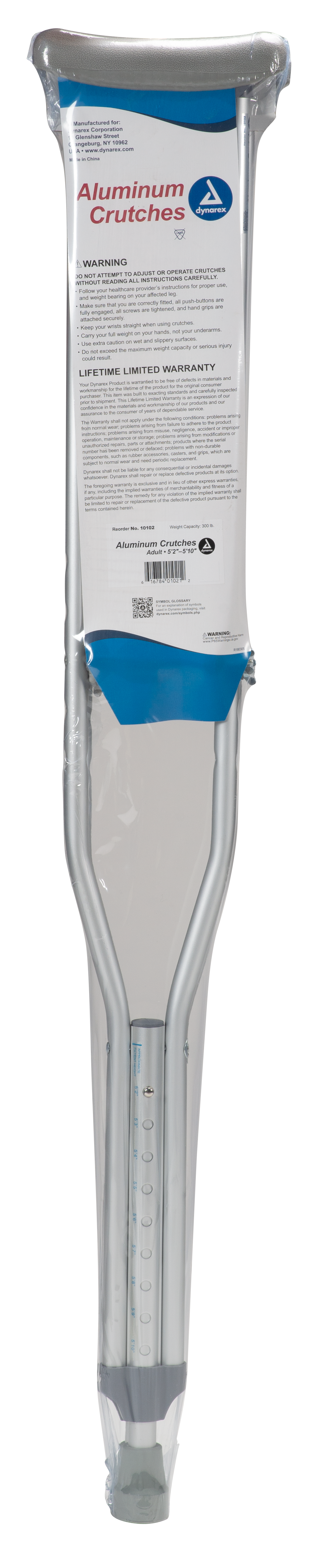 Dynarex Aluminum Crutches are standard, lightweight crutches providing stability and durability. Inclusive of underarm pads and hand-grips, providing extra comfort when in use. The tool-free design allows for a push-button height adjustment, in 1-inch increments to better match the user’s height, as well as adjustable hand grips to ensure a proper fit. The Aluminum Crutches are also fully equipped with crutch-bow ends, preventing slipping when climbing stairs and helping increase stress tolerance at all angles without causing cracks. The durable construction ensures the ability to hold up to 300 pounds.