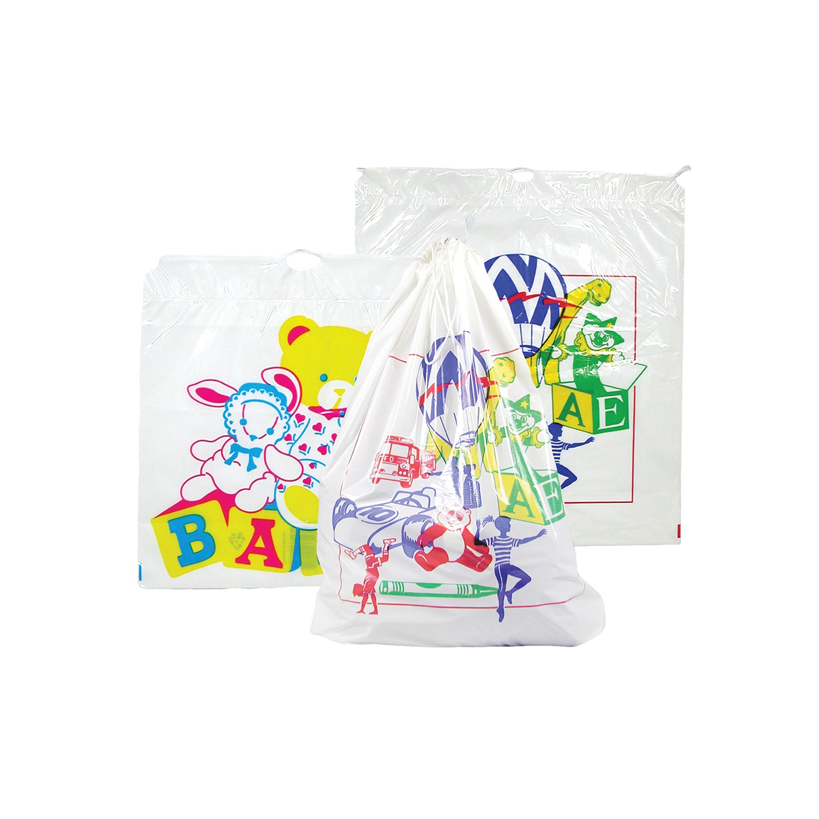 - White bag with colorful children's design
