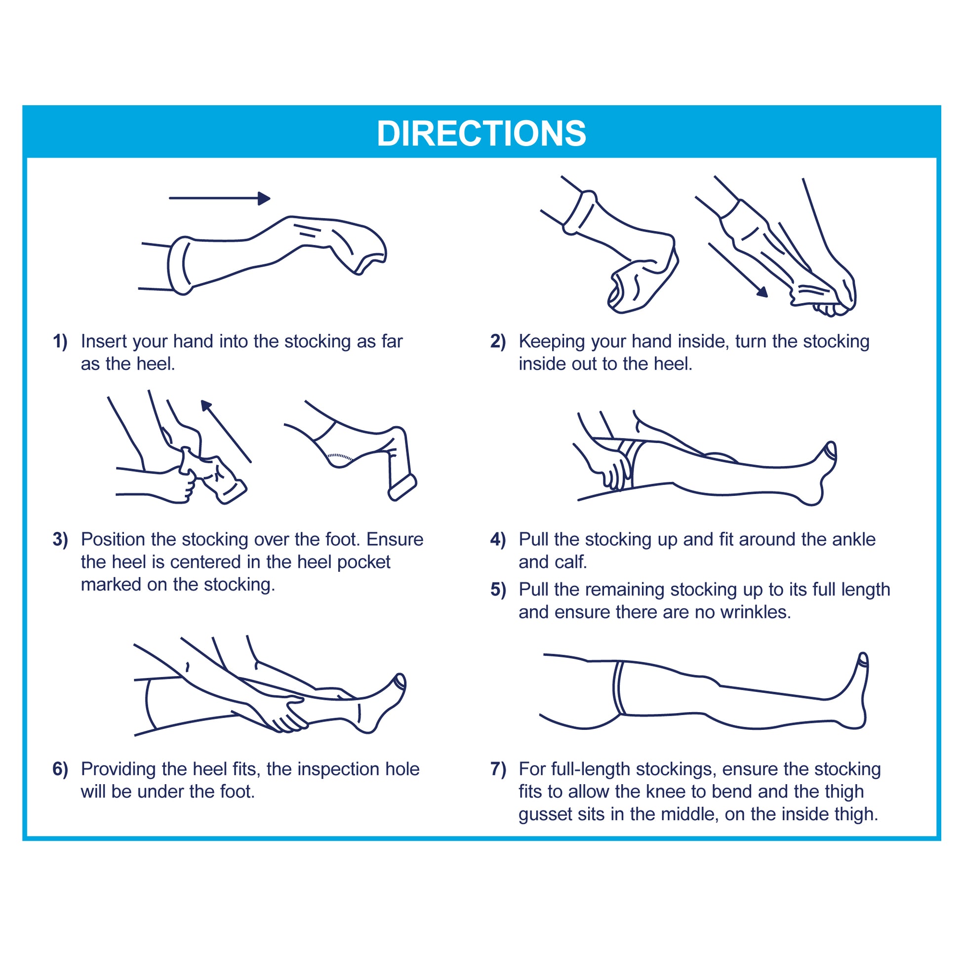 Dynarex DynaFit Compression Stockings stimulate blood flow and reduce patient risk for Deep Vein Thrombosis (DVT). Patients who wear compression stockings experience decreased pain and swelling of the legs and ankles. The scientifically proven compression provides relief to individuals with chronic conditions and those recovering from injuries or surgeries. Additionally, the stockings are designed to help without generating a tourniquet effect.