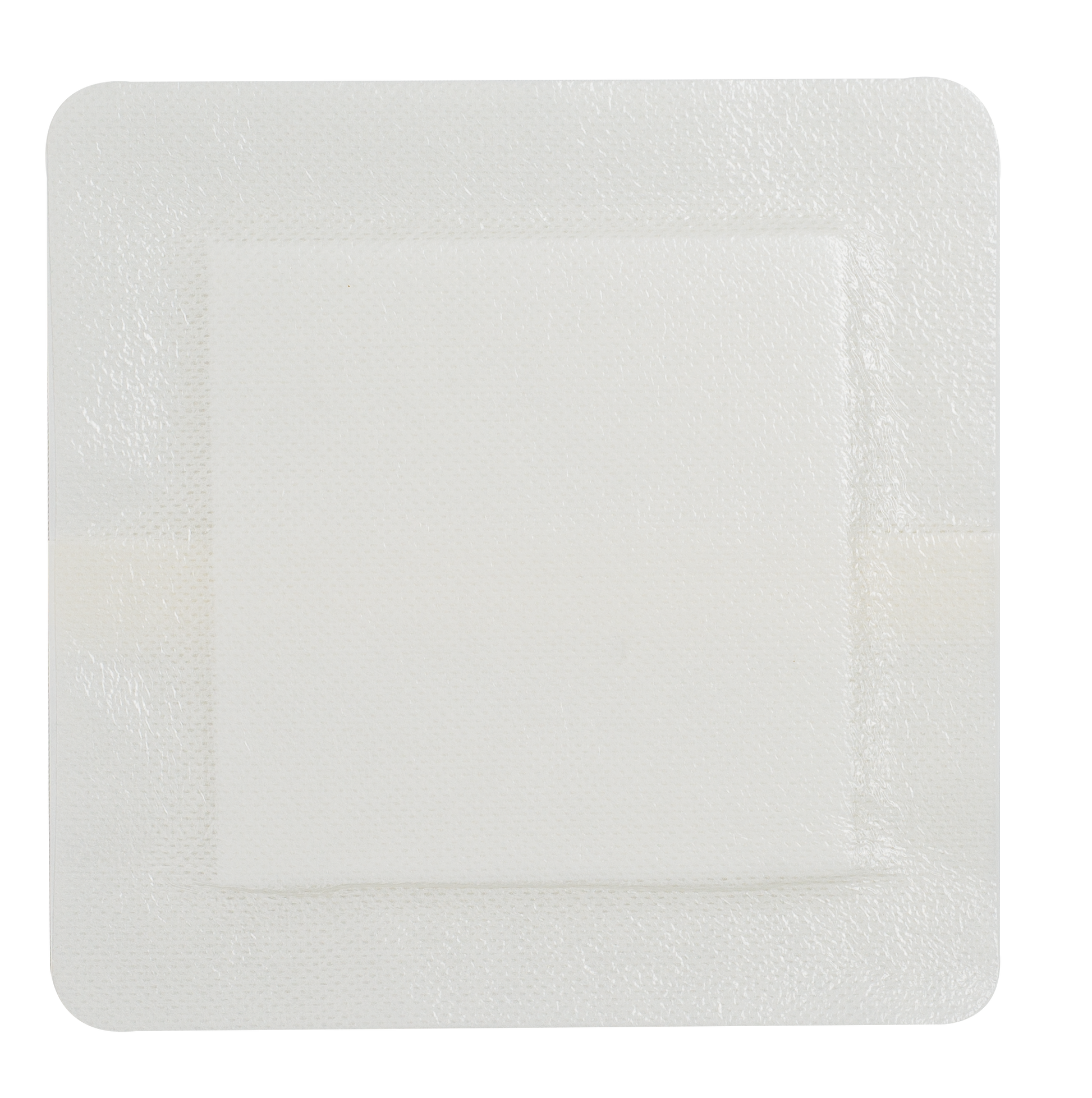 - Four-layer construction: low-adherent contact layer, absorbent pad, semi-occlusive barrier film and conformable adhesive non-woven fabric border.