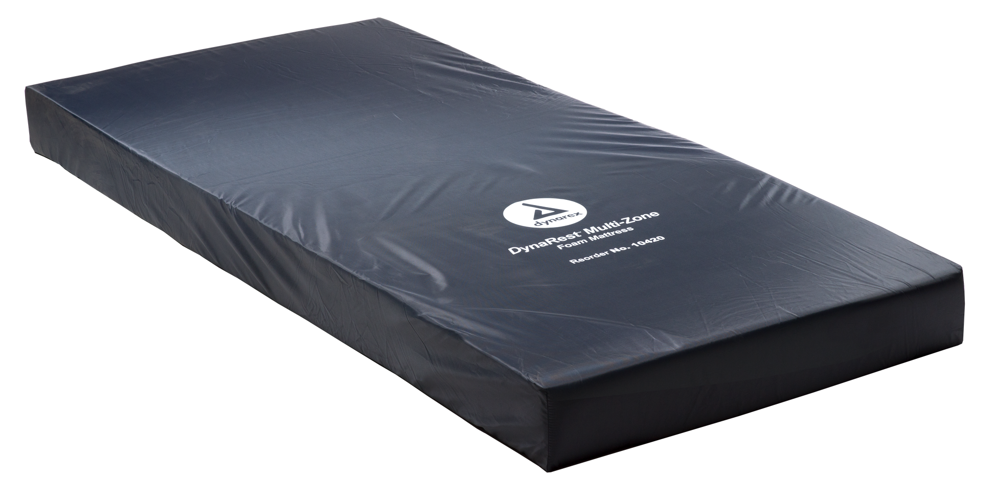 The DynaRest Multi-Zone Foam Mattress is a single layer foam mattress offering a therapeutic core to provide superior pressure relief and comfort in three distinct areas: head and shoulders, torso and lower extremities. The high density, precision cut foam provides pressure redistribution, helping prevent capillary occlusion, skin abrasion and moisture build up. With the DynaRest Multi-Zone Foam Mattress patients gain extra protection with low shear friction from the nylon cover, which is fluid-resistant and features an anti-contamination zipper, located beneath the mattress, reducing the possibility of fluids contaminating the foam core.