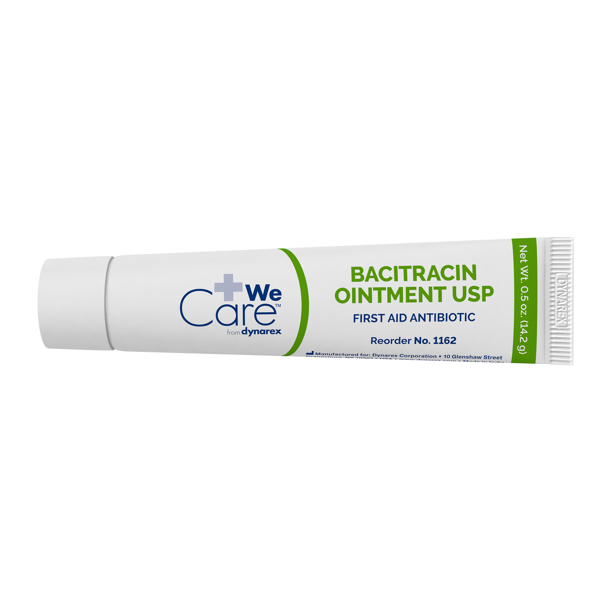 Dynarex Bacitracin Ointment helps prevent infection in minor cuts, scrapes and burns, as well as inhibits bacterial growth. Available in single use packets, tubes and jar sizes, making it convenient and ideal for first aid kits, clinics and home use.