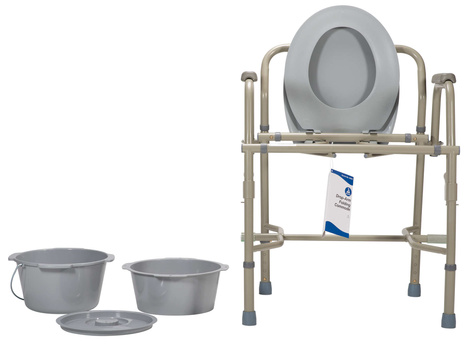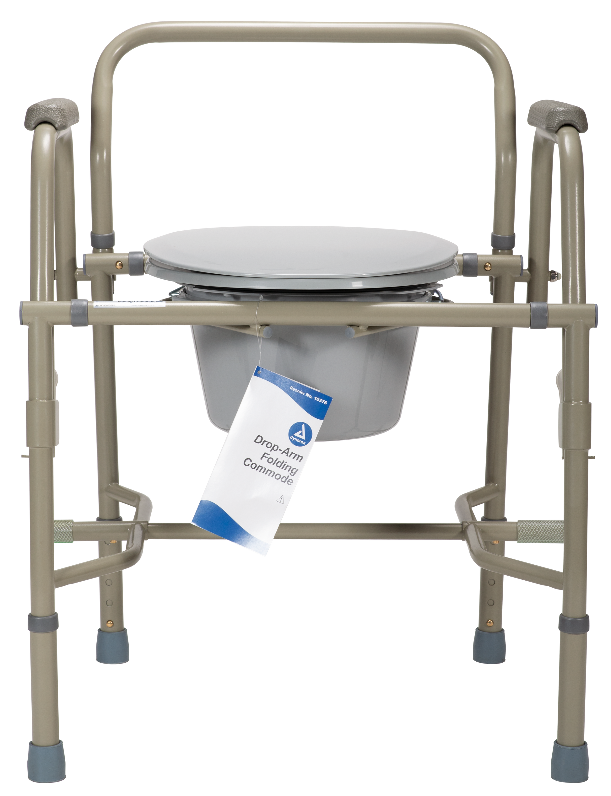 The Dynarex Drop-Arm Bedside Commode has three versatile functions and can easily open and fold flat. This commode can be configured as a bedside commode, raised toilet seat or a toilet safety frame over your current toilet. The tool-free design allows for easy folding and height adjustments in 1-inch increments, to raise and lower the chair height to safely accommodate any individual. The design is also inclusive of drop arms allowing for safe lateral patient transfers.