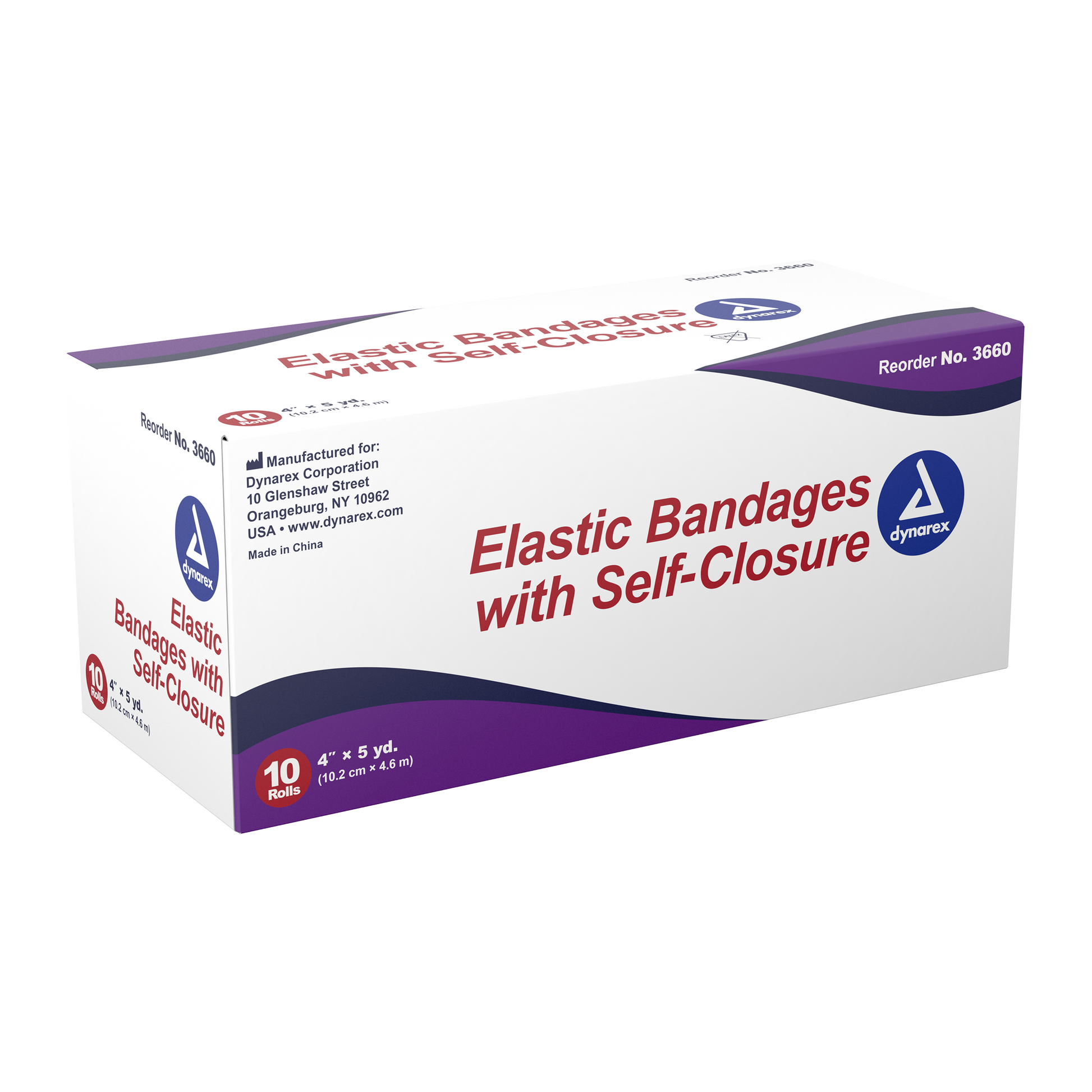 Dynarex Elastic Wrap Bandages with Self-Closure provide consistent stretch and provide maximum compression for injuries. Elastic bandages are individually poly-wrapped with self-closure providing a non-slip grip while using no pins, clips, or tape.