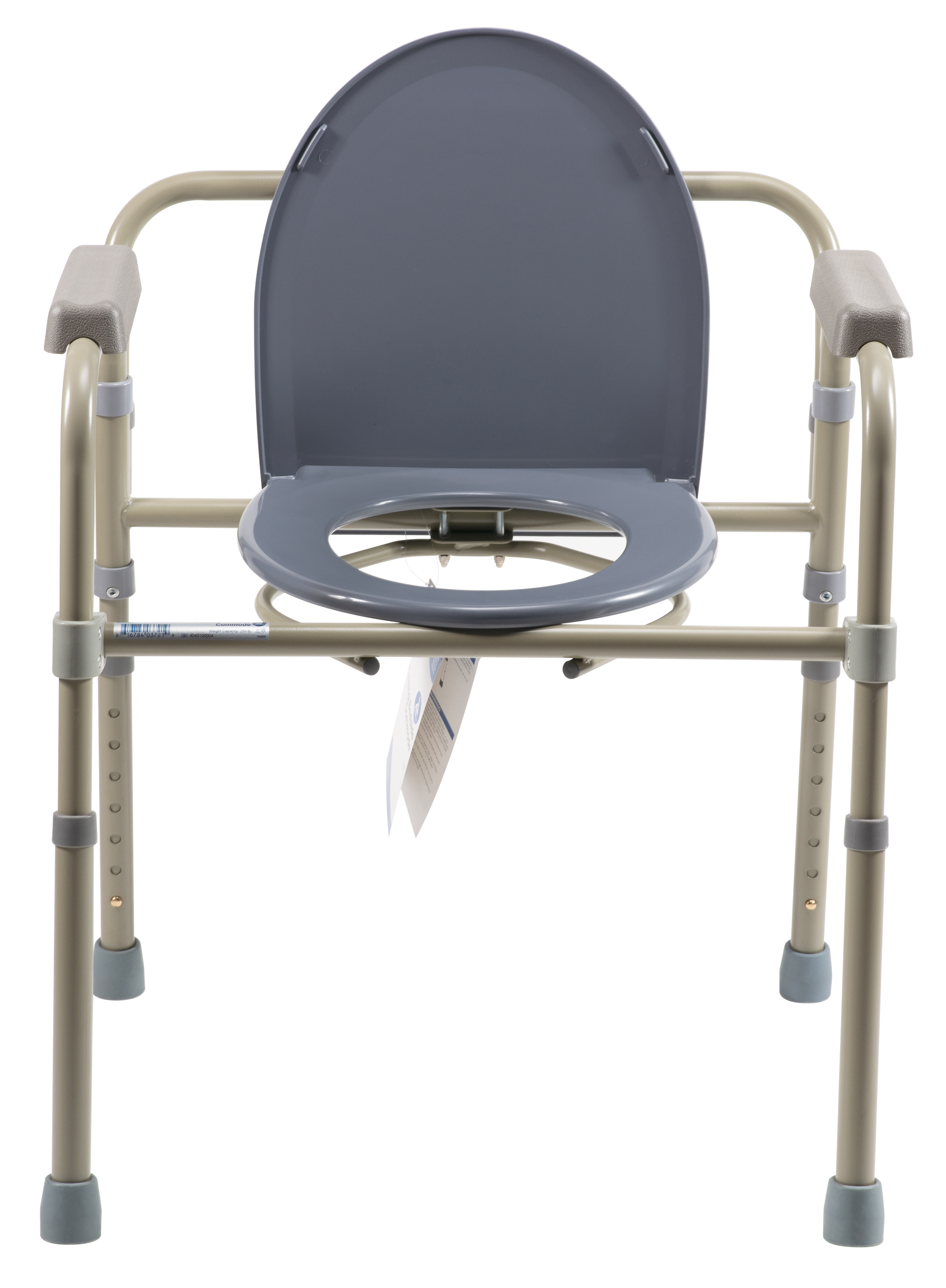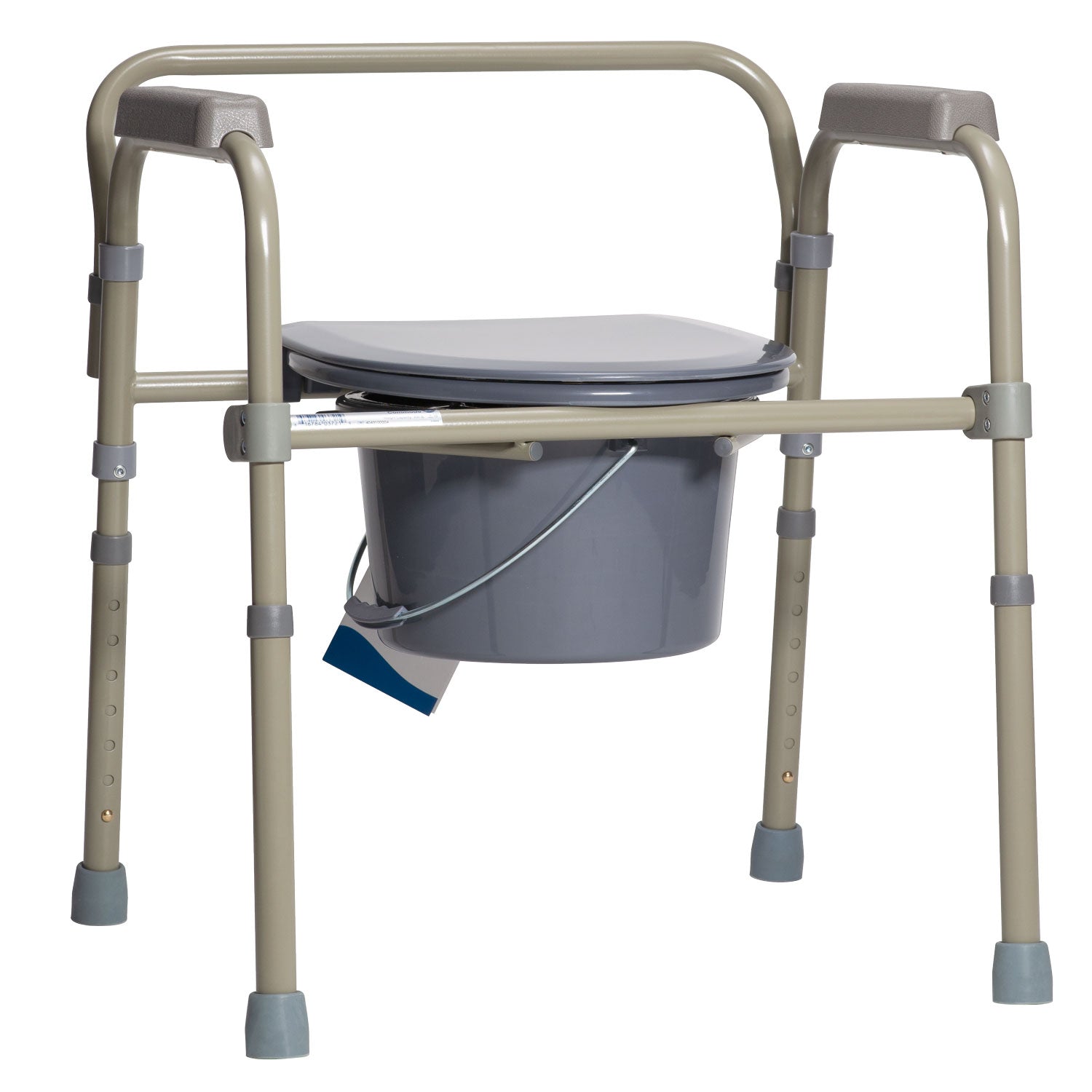 The Dynarex Folding Bedside Commode is a versatile, three-in-one commode that can be configured as a commode, raised toilet seat or toilet safety rail over your current toilet.