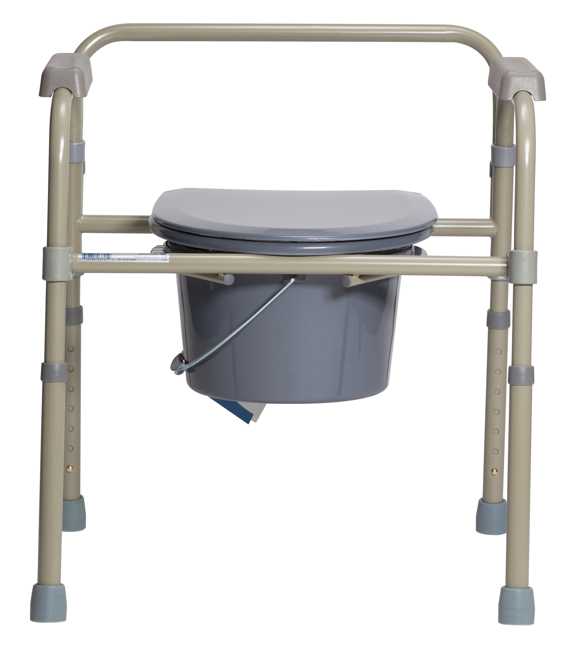 The Dynarex Folding Bedside Commode has three versatile functions and can easily open and fold flat. It features a tool-free removable back, durable snap on seat with lid and comes complete with drop-in commode bucket with handle and splash guard. The tool-free design allows for easy folding and height adjustments, raising and lowering the chair height to safely accommodate any individual.