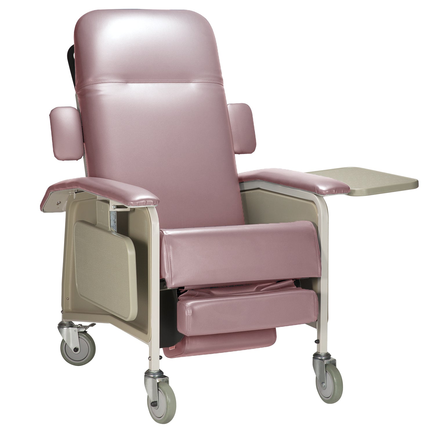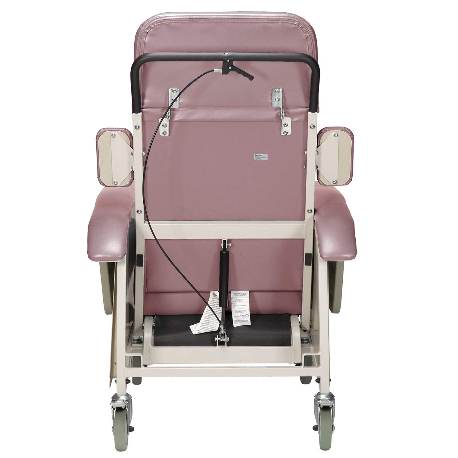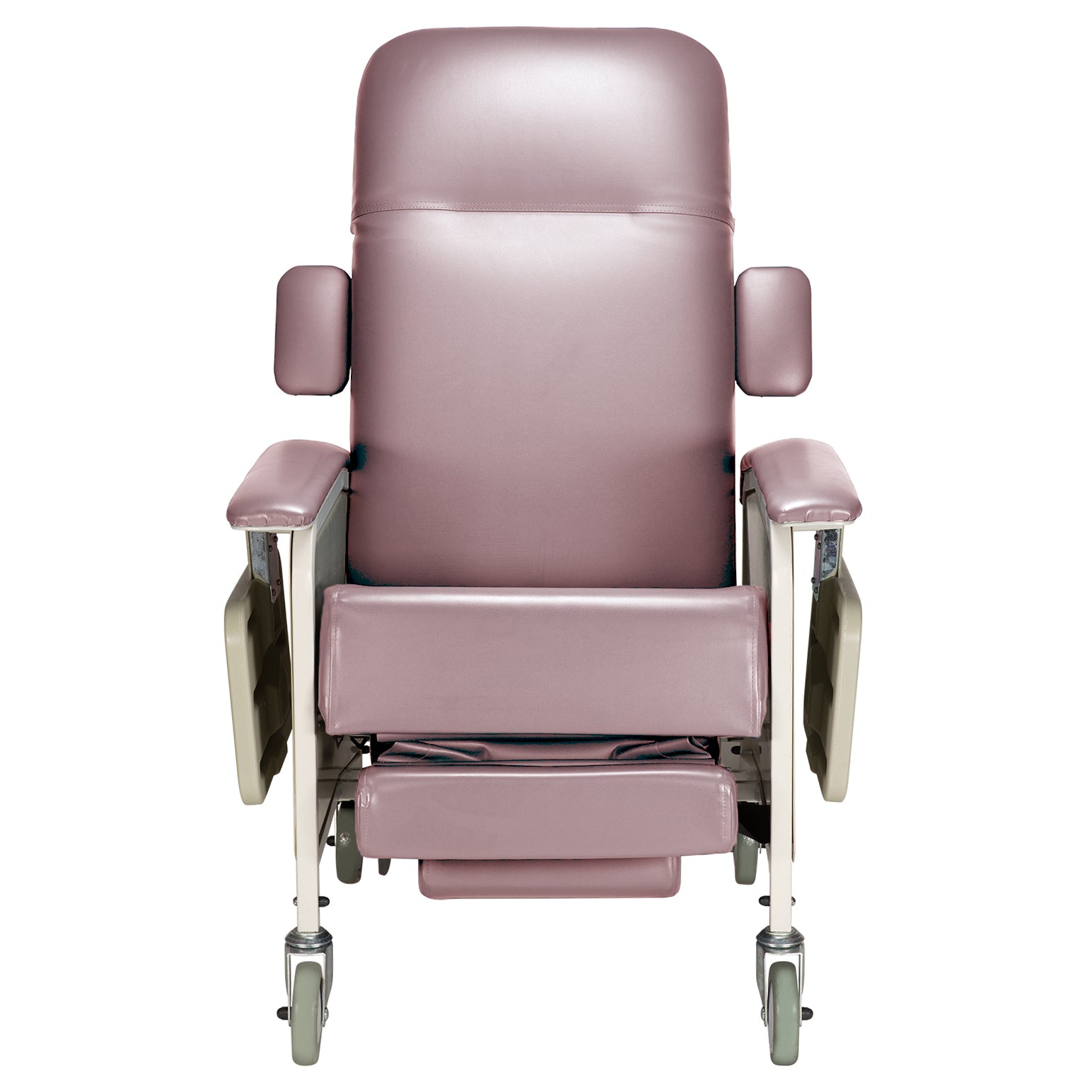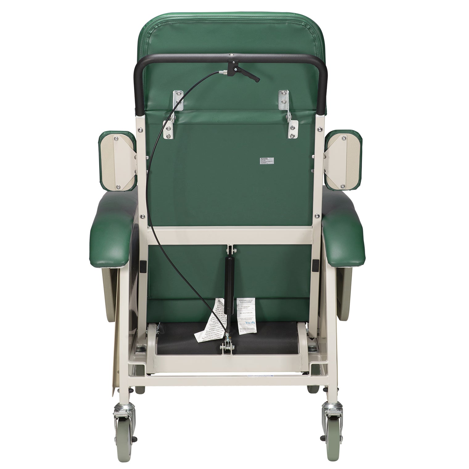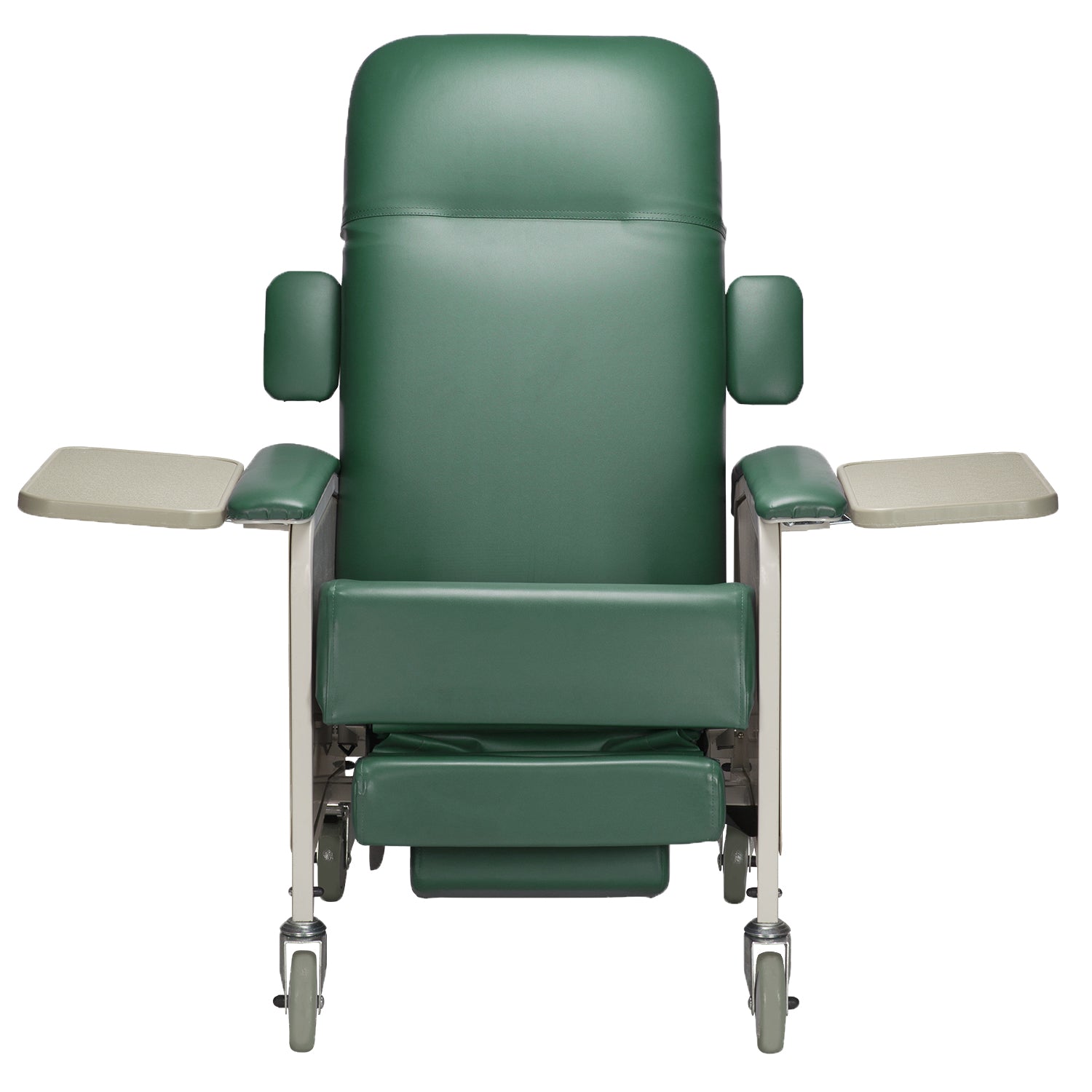 The Dynarex Infinite Position Geri Chair Recliner offers comfort and durability to patients in hospitals, clinics or assisted living facilities. With maximum flexibility, this chair shifts into four positions - a full recline, TV, Trendelenburg and full upright. The Trendelenburg and full recline are operated by a gas cylinder control which can only be attained by the patients and has a release handle for a quick position adjustment. The neutral-colored steel frame has side panels that remove allowing for easy an easy clean and maintenance. The built-in headrest and wide, comfortable, padded arm rests were constructed at an angle to provide support, even in a reclined position.