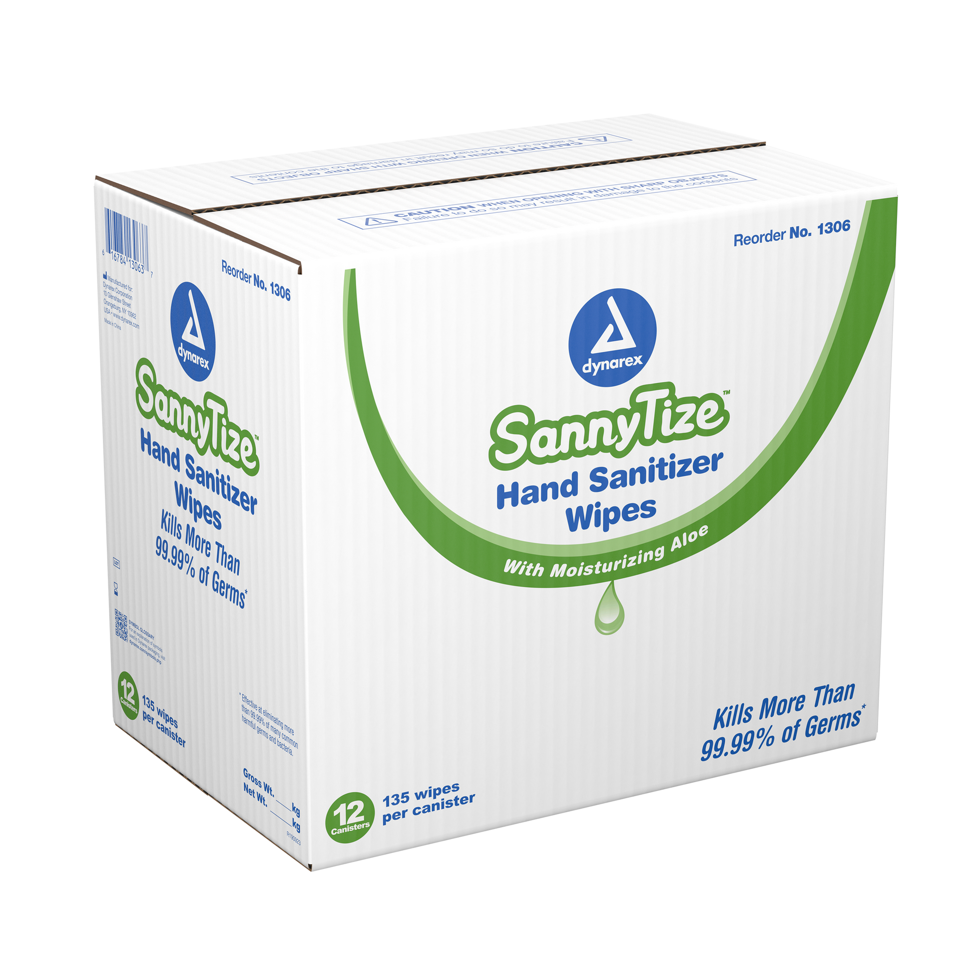 Sannytize Hand Sanitizer Wipes eliminate more than 99% of germs and bacteria while wiping away light dirt and grime. The Dynarex Sannytize hand sanitizer wipes are textured allowing for a superior cleaning. These wipes also contain aloe to help soothe and moisturize the skin.