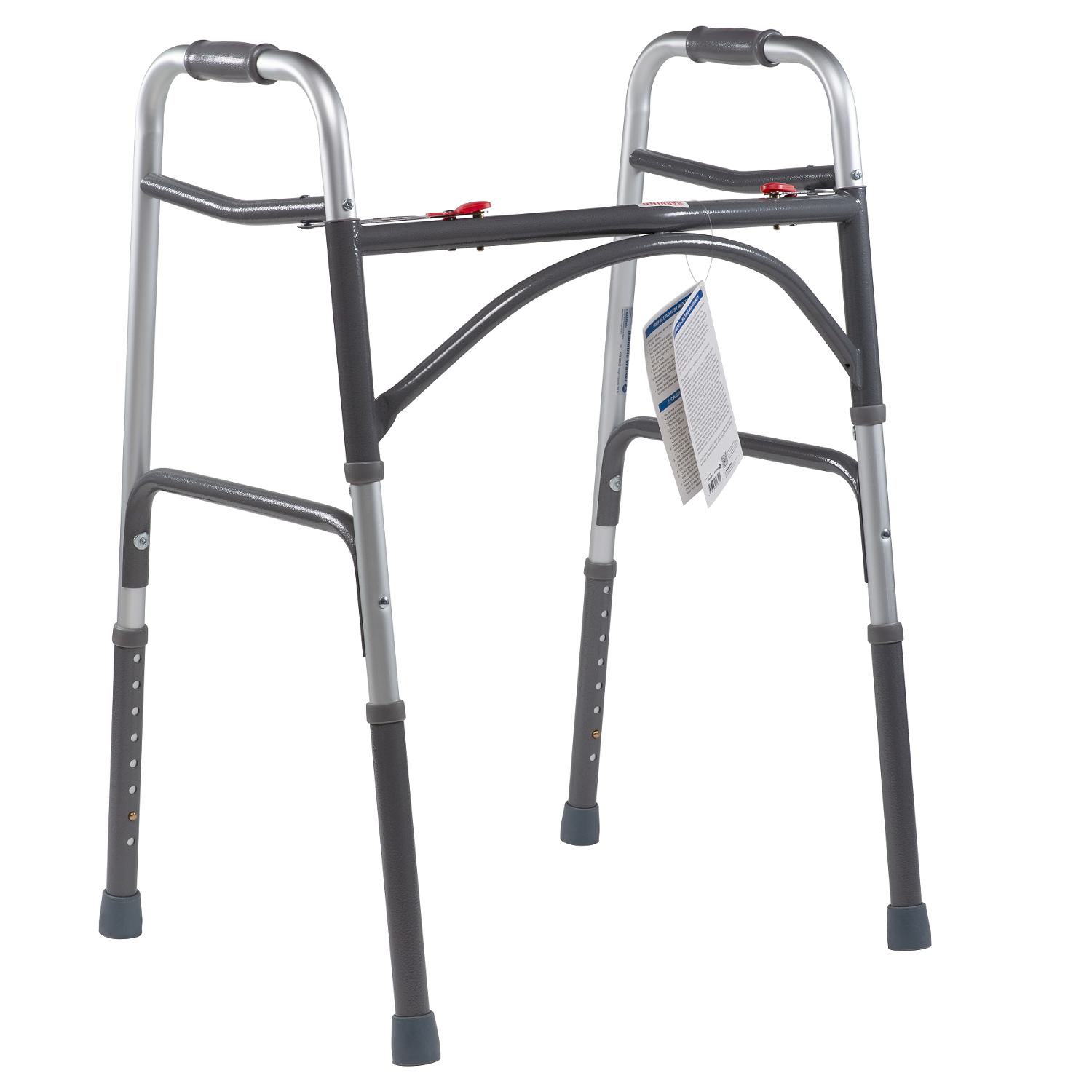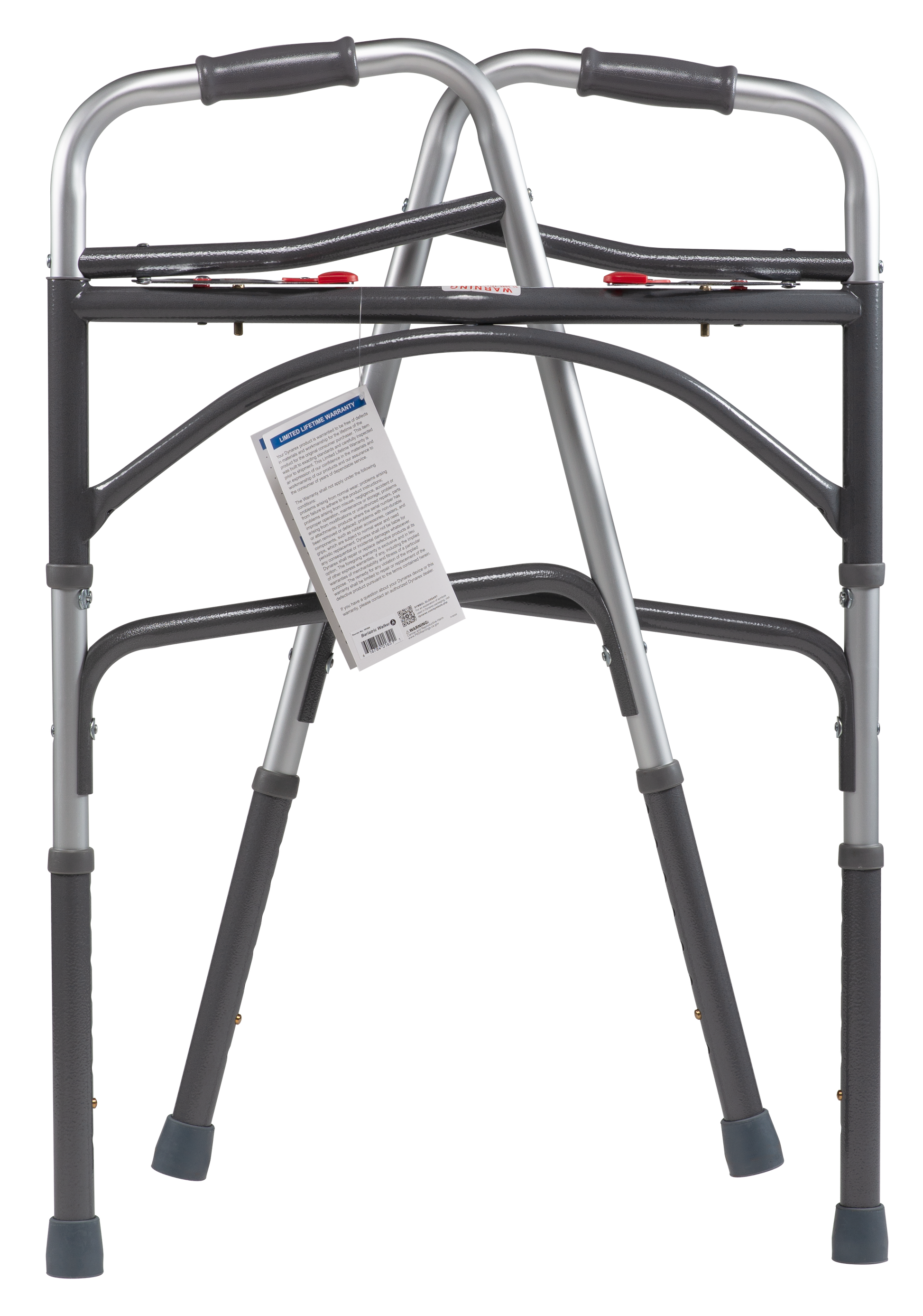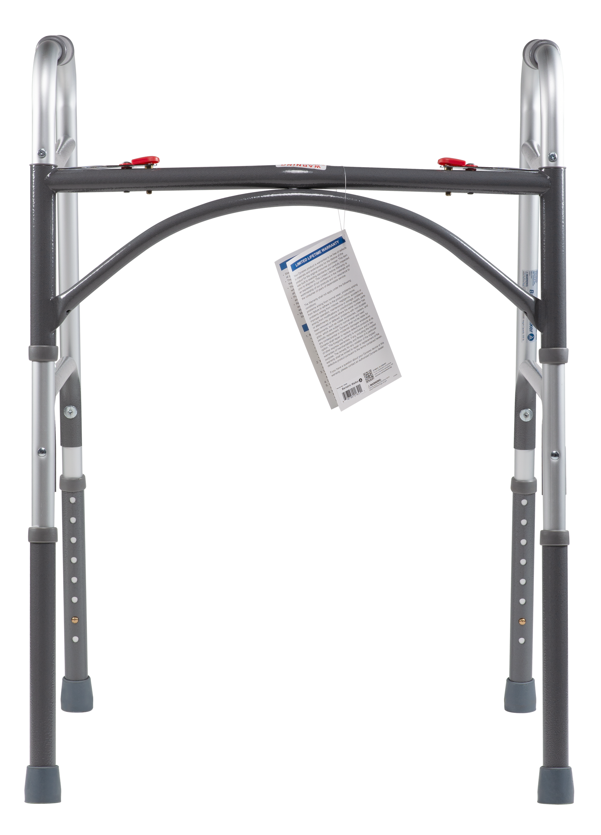 - Tool-free push button allowing for height adjustments, raising or lowering the walker to accommodate any individual.