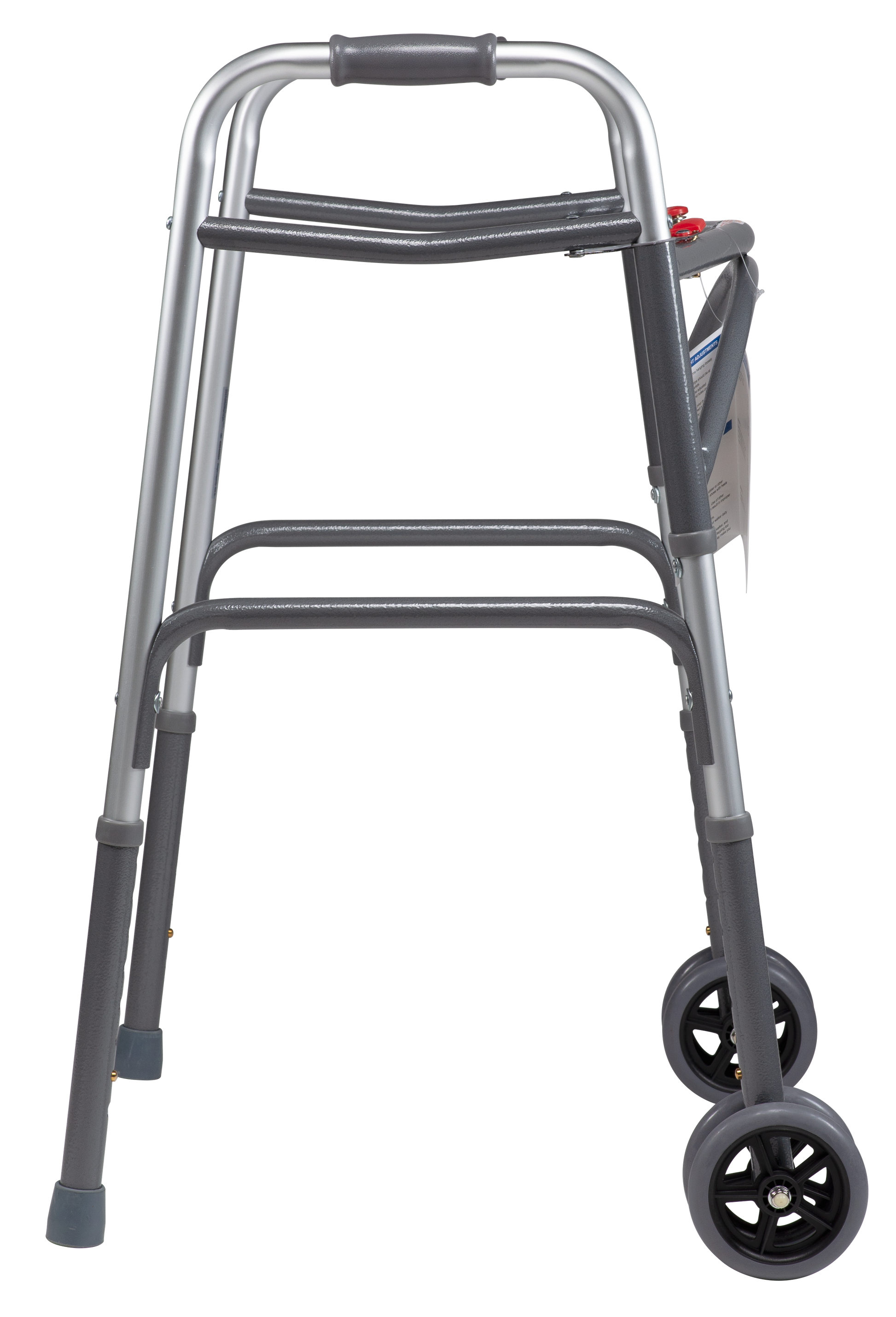 - Tool-free push button allowing for height adjustments, raising or lowering the walker to accommodate any individual.