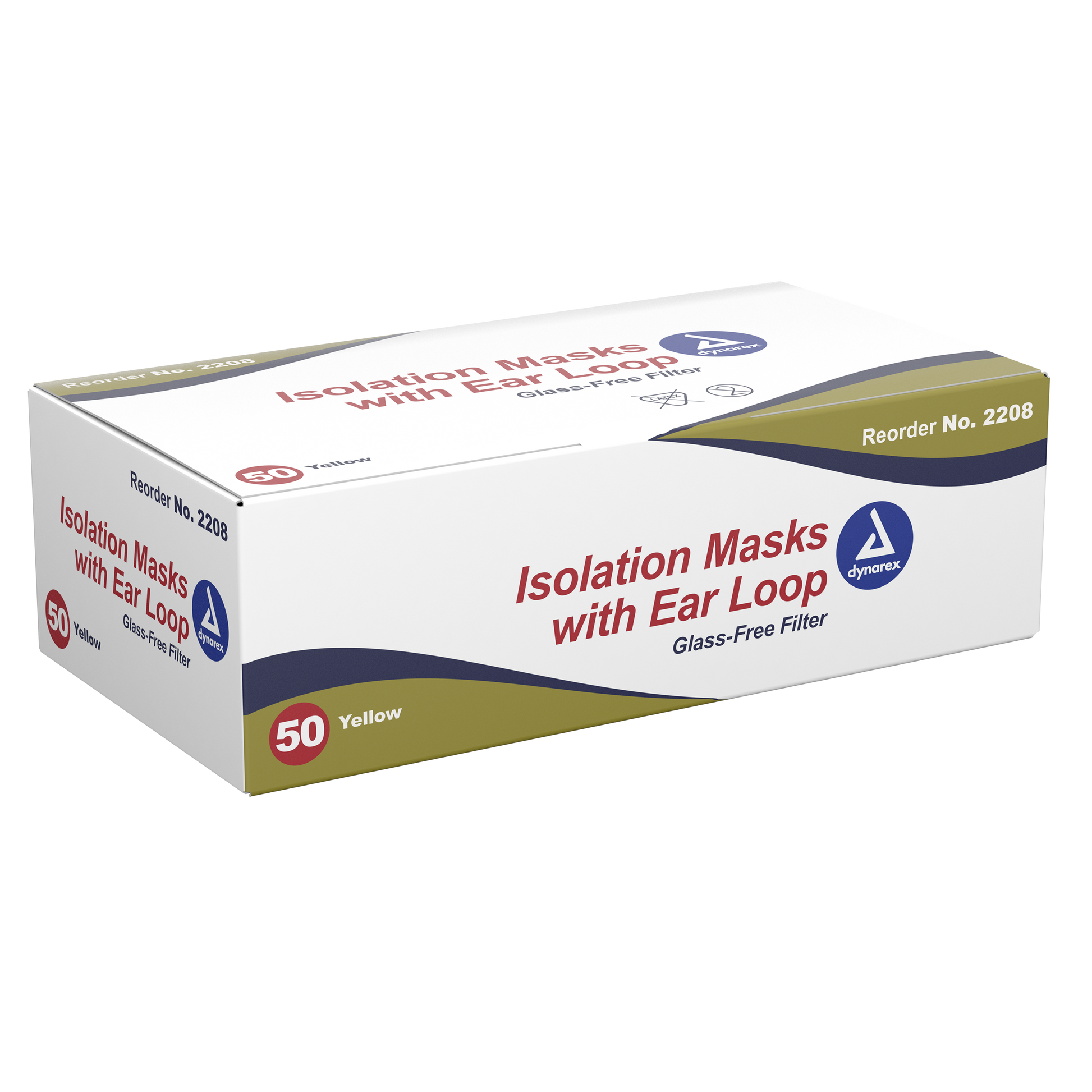 Dynarex Procedure and Isolation Face Masks are pleated ear loop face masks with a glass-free filter that are available in blue and yellow, as well as blue with a plastic shield. These masks are ideal for control of airborne droplets, additionally, the face shield protects against pathogens contained in body fluids and provides protection for the face and eyes.