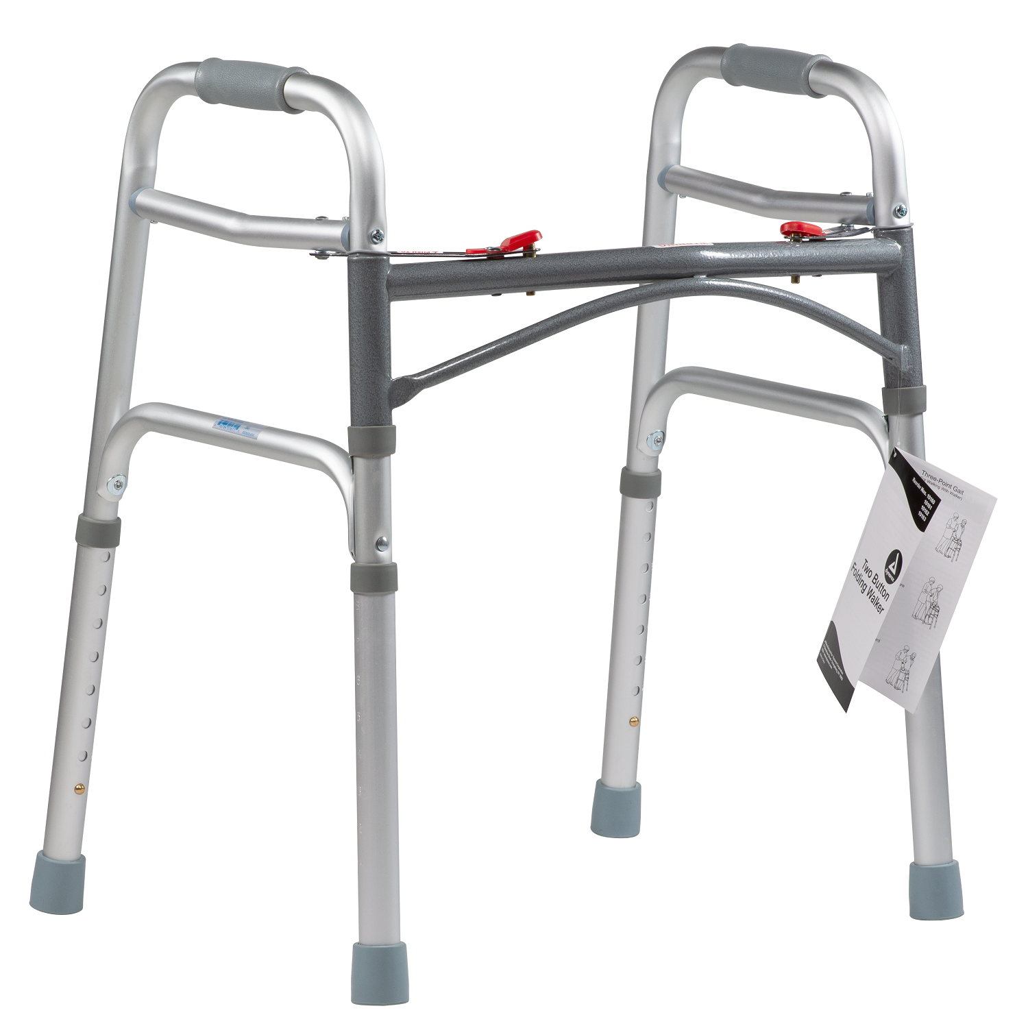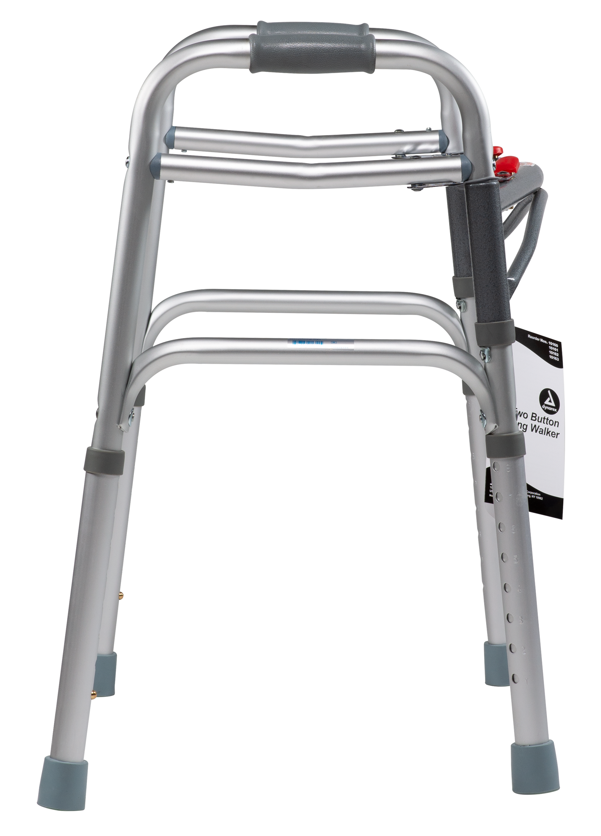 The Dynarex Two-Button Walkers are a safe, dependable solution for those who need a convenient aid while performing daily activities. The walkers open and close with an easy-to-use push button mechanism that may be operated by the user’s fingers or palms, and each side operates independently to allow for easy movement through narrow spaces. The tool-free button allows for height adjustments, raising and lowering the walker to accommodate any individual. The design is also inclusive of contoured handgrips for added patient comfort.
