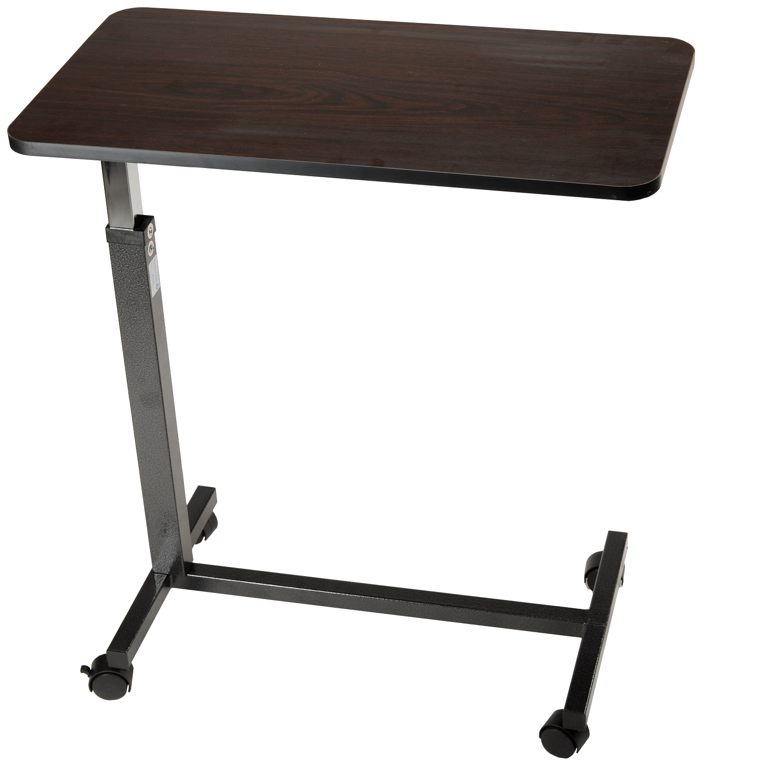 - Smooth operating, easy spring-loaded lift mechanism allows the overbed table to be raised or lowered with an infinite number of settings.