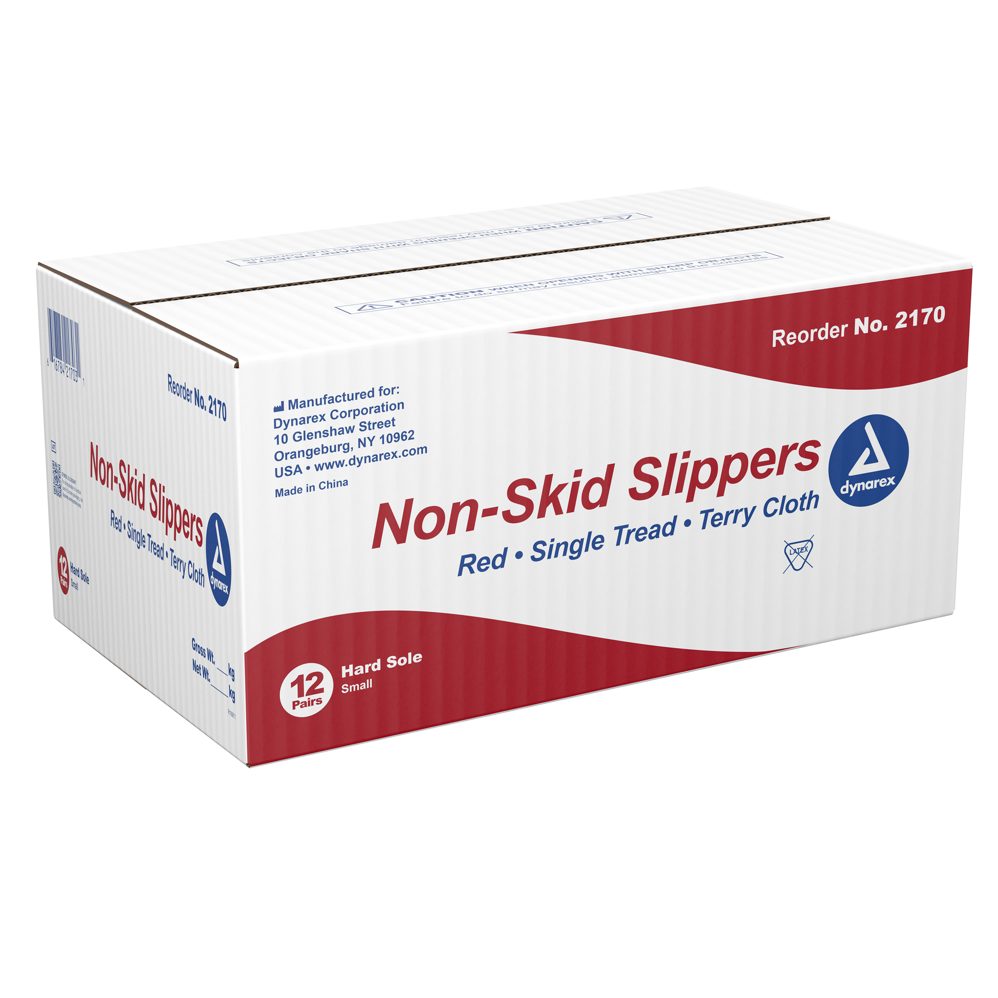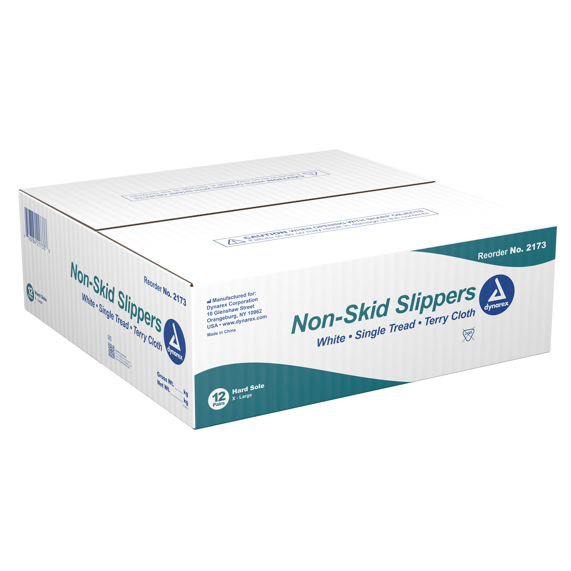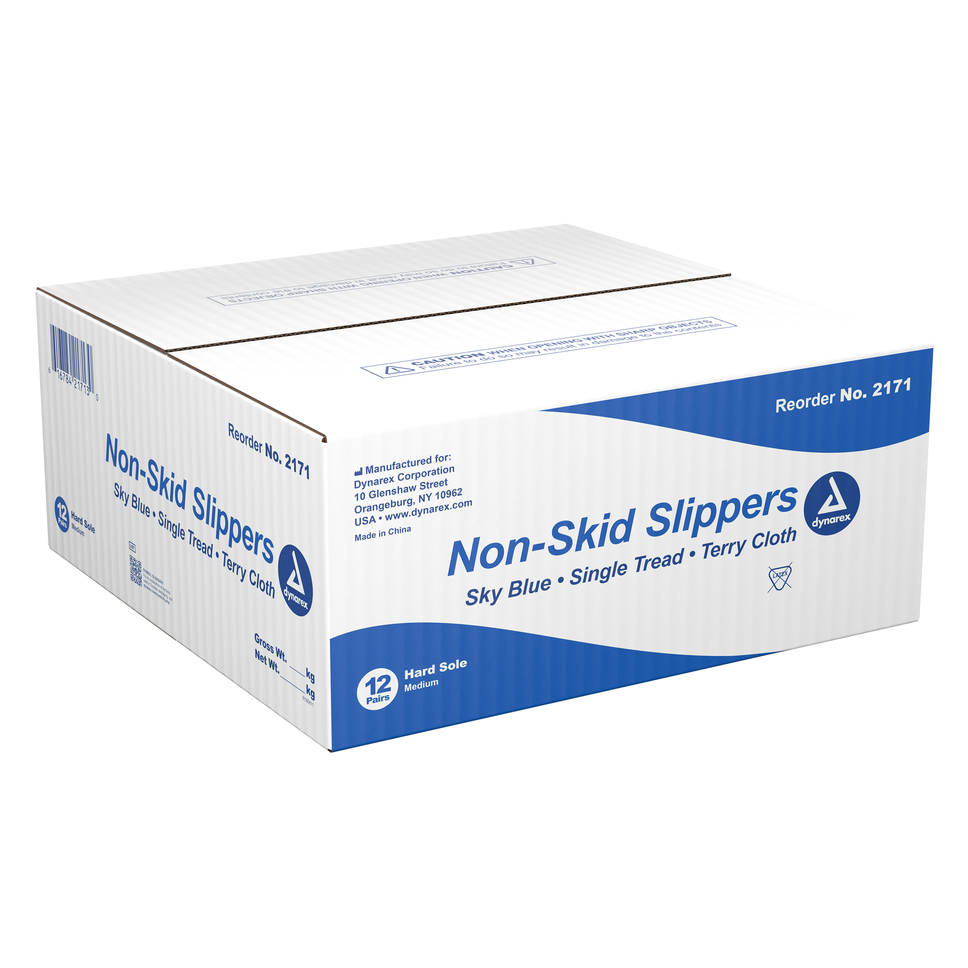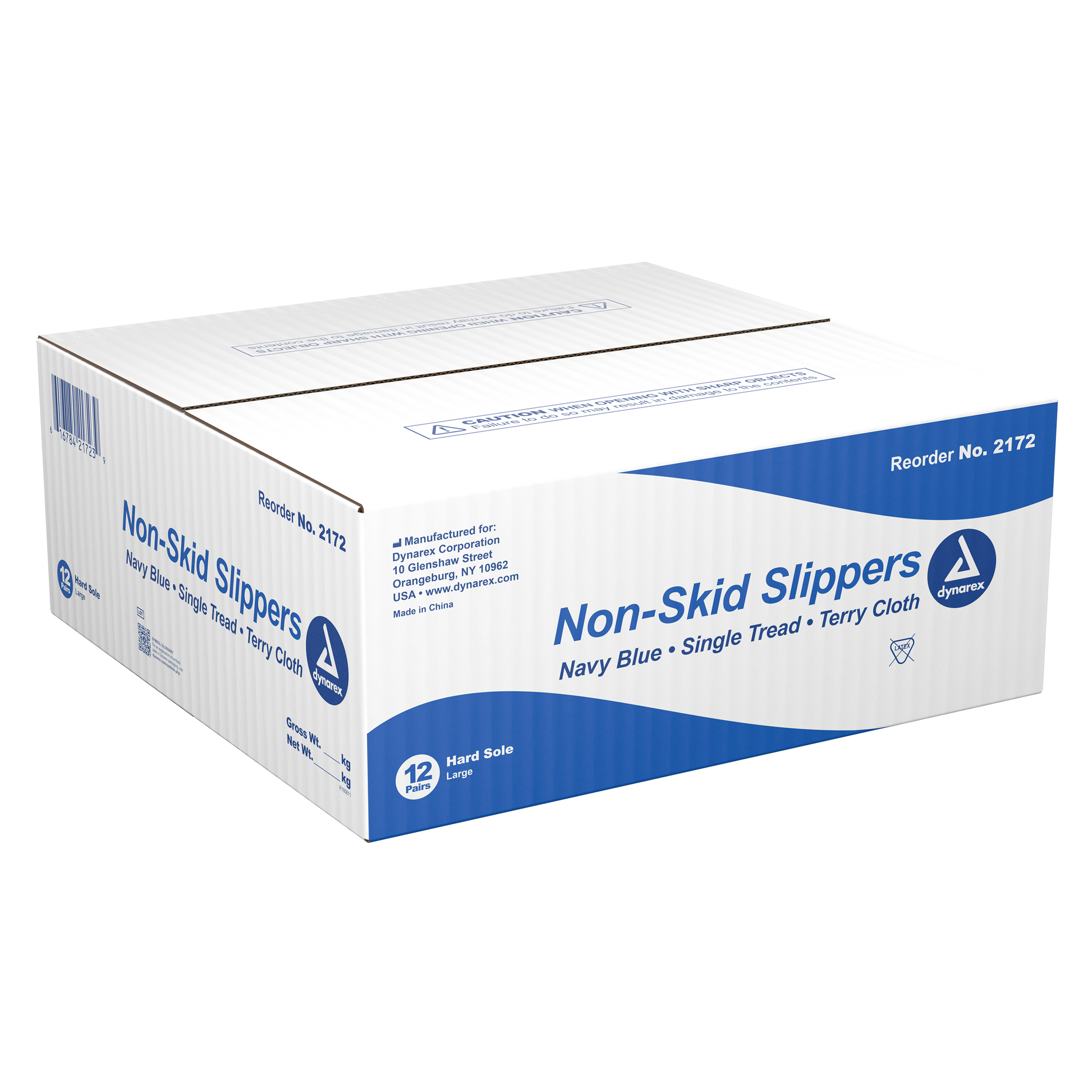Dynarex Hard Sole Slippers feature rubber soles to prevent patient falls. The slippers are made of soft, terrycloth fabric to keep feet warm, dry, and comfortable. Ideal for patients in a variety of clinical and long-term care facilities.