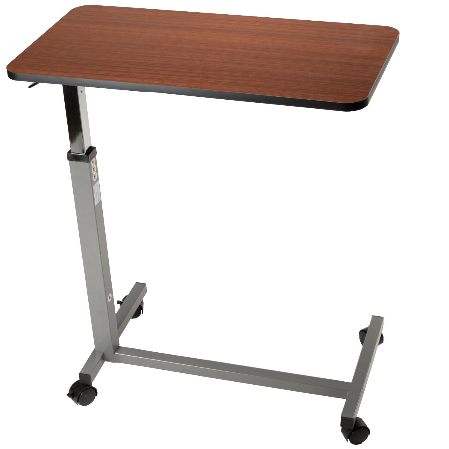 - Smooth operating, easy spring-loaded locking lift mechanism allows the overbed table to be raised or lowered.