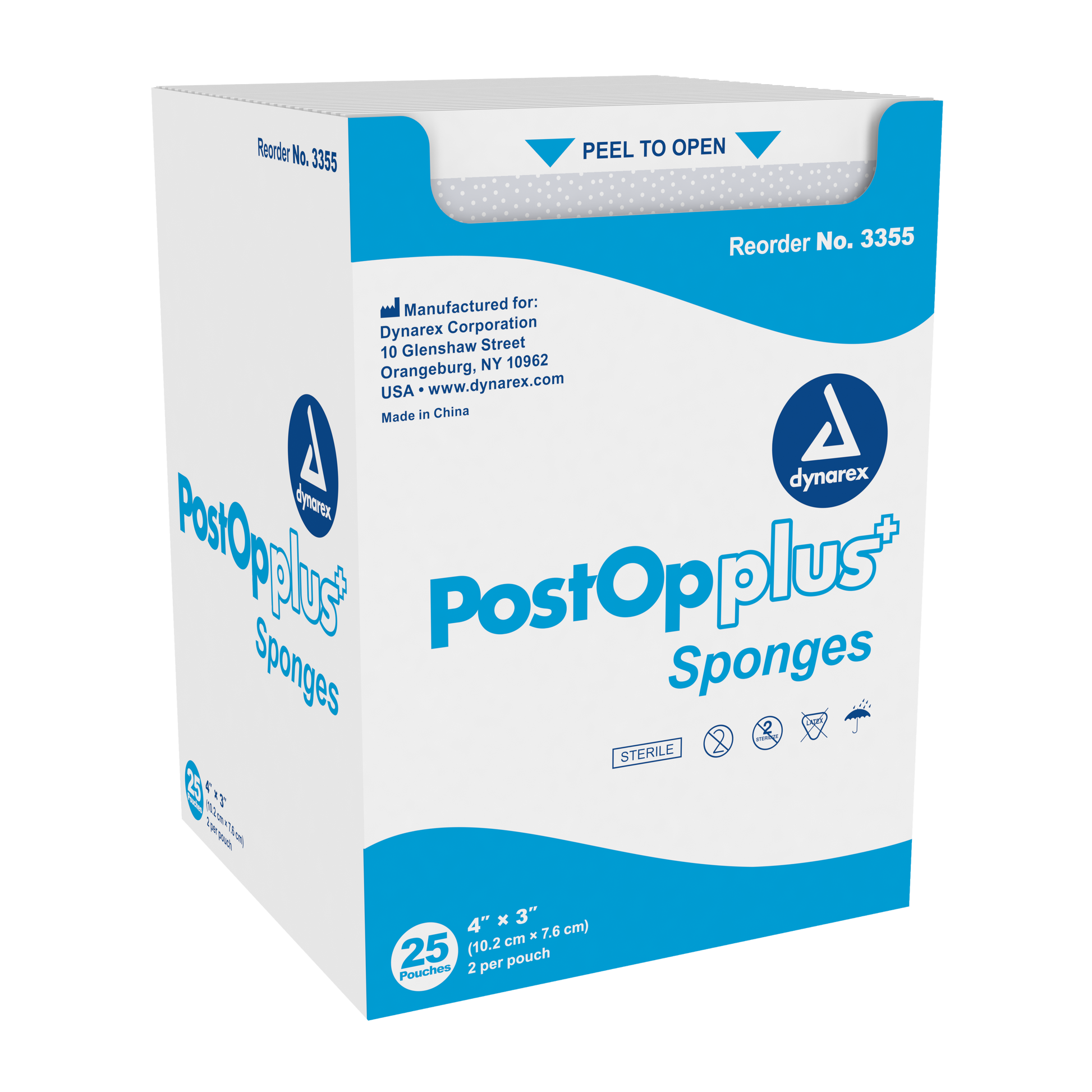 Dynarex Post-Op Sponges are 100 percent woven cotton sponge that are sterile, highly absorbent and packaged in a peel down pouch for convenient aseptic handling. These Gauze Sponges are ideal for surgical procedures and Dialysis.
