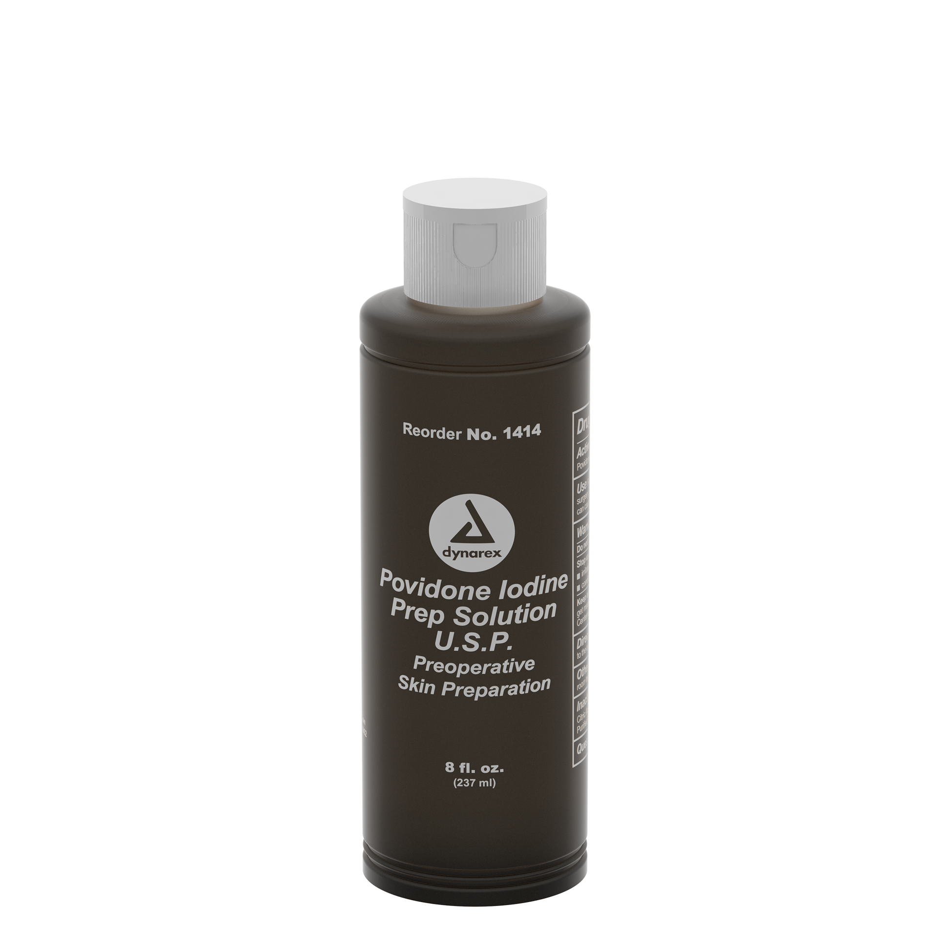 Dynarex Povidone Iodine Prep Solution is an ideal antiseptic for surgical site preparation, as well as treatment for skin abrasions, lacerations and minor burns. This solution is made up of 10% povidone iodine, U.S.P. equivalent to 1% available iodine.