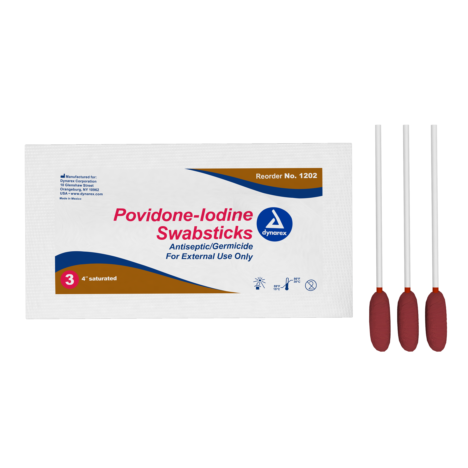 Dynarex - Povidone-Iodine Swabsticks, 3 swabsticks per packet