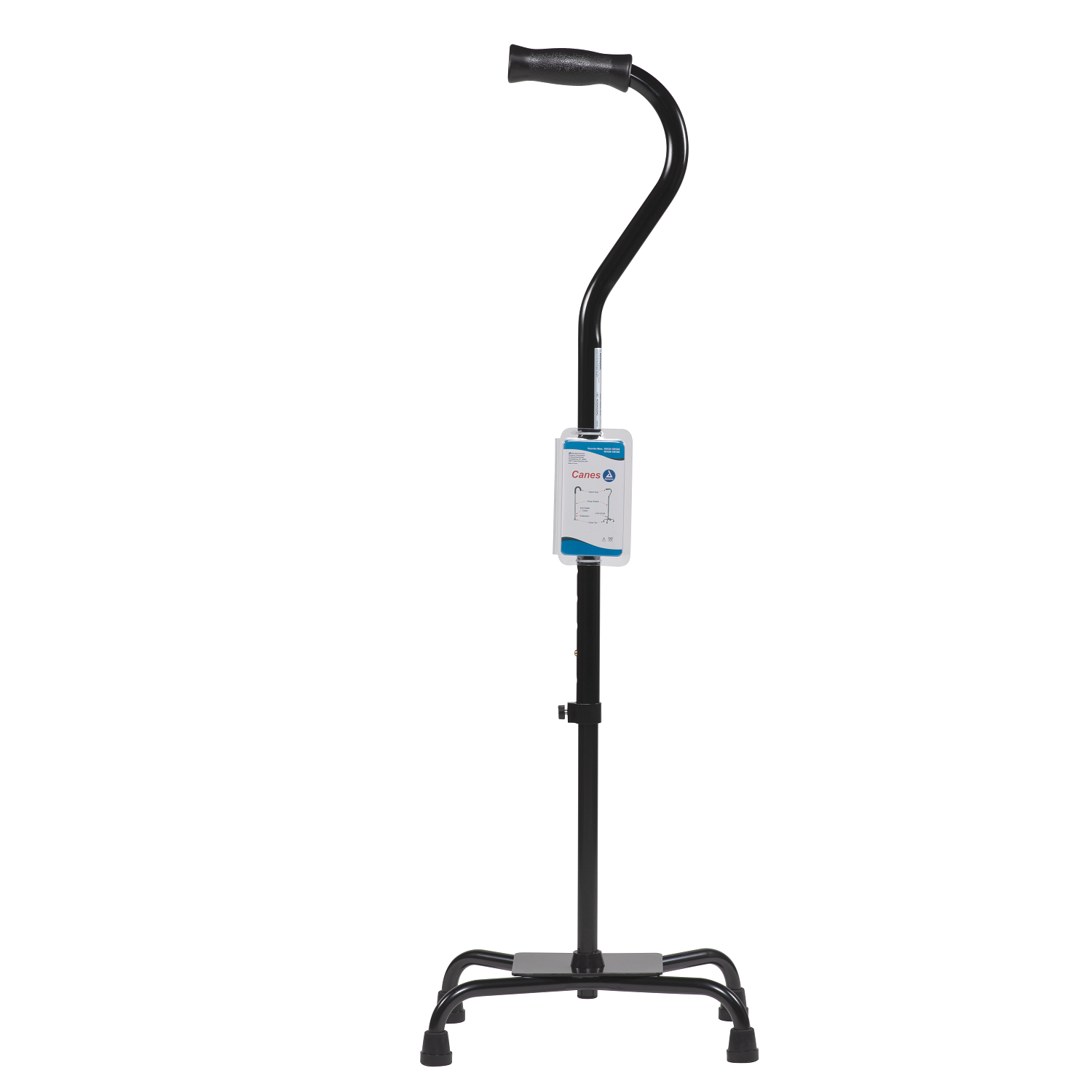 The Dynarex Quad Canes are constructed with a durable, anodized aluminum frame that is adjustable with a tool-free push-button and locking knob for duel security, ensuring that the cane stays at the set height without slipping. The four-legged steel base is inclusive of non-skid tips providing greater traction on smooth surfaces, as well as greater stability on uneven surfaces. These canes have an ergonomic contoured handle that can rotate allowing for a proper fit with right- or left-hand use, creating a comfortable grip for everyday use.