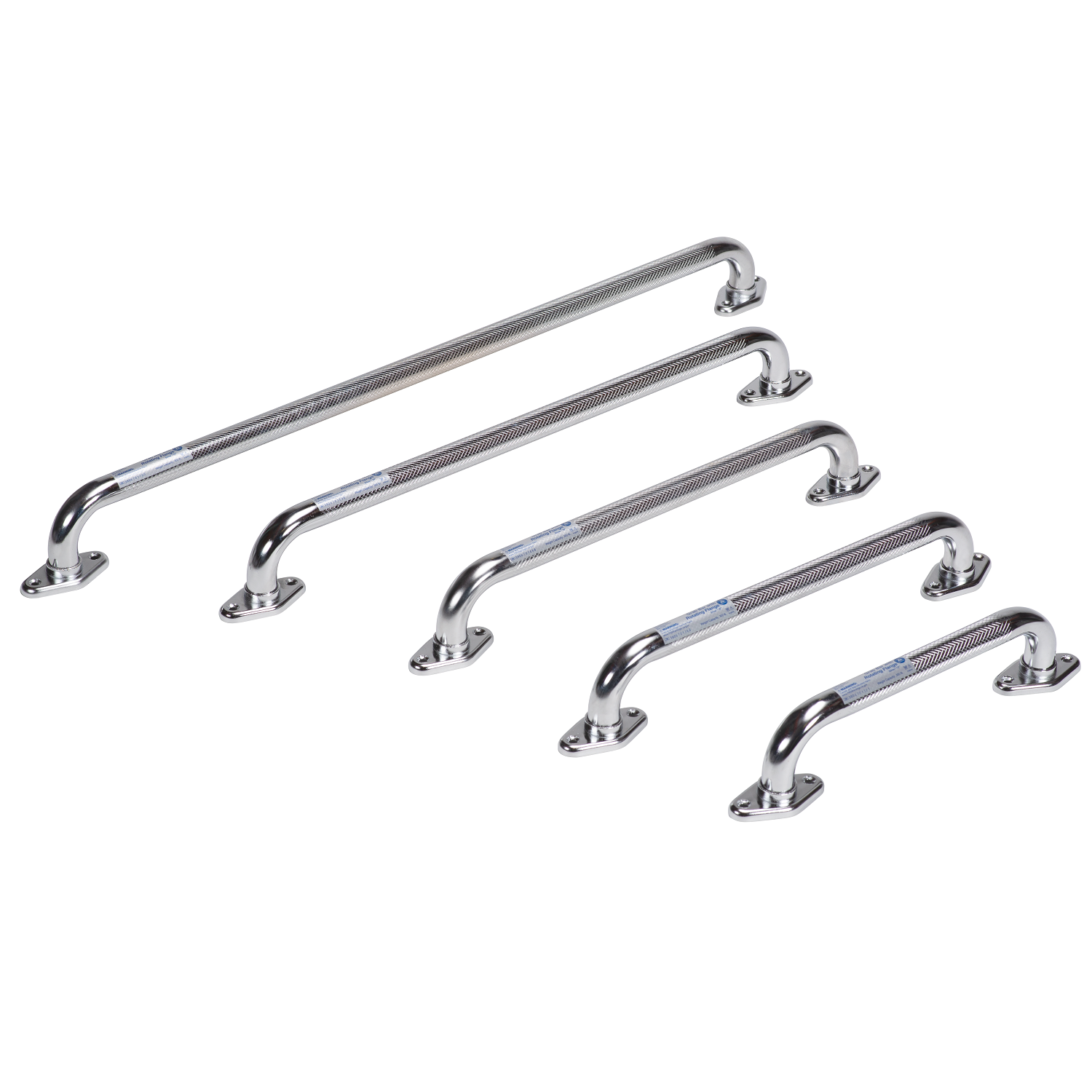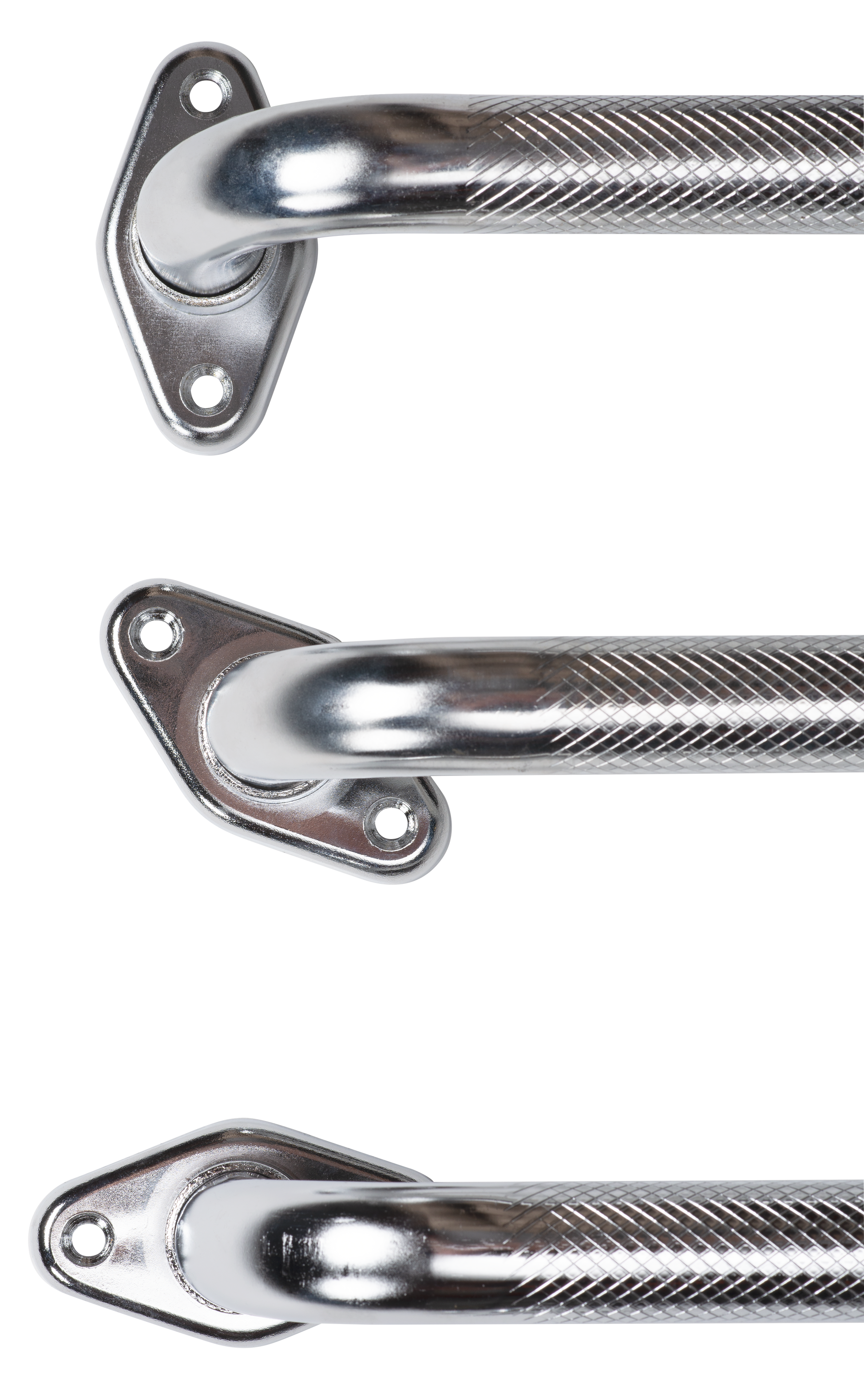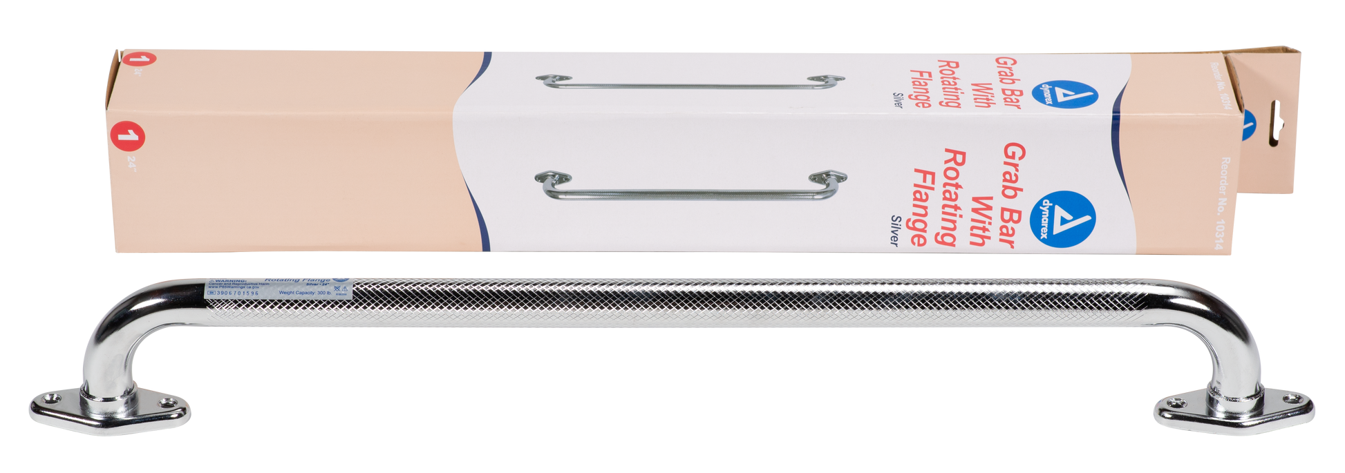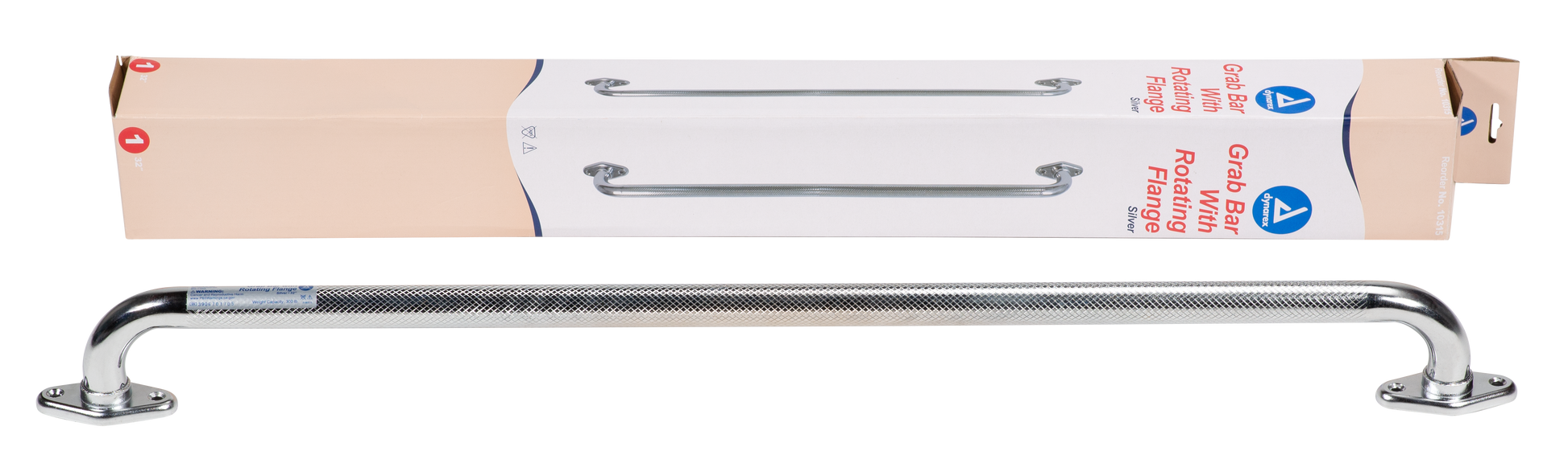 The Dynarex Chrome Knurled Grab Bars are constructed of high-quality, chrome plated steel that is built to last and prevents rust. The Knurled-texture steel provides a no-slip grip, providing safety and stability in wet bathing areas. These grab bars mount 2 ½” from the wall, equipped with a rotating flange for an easier installation either vertically, horizontally or diagonally.