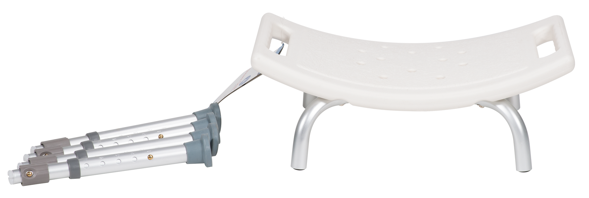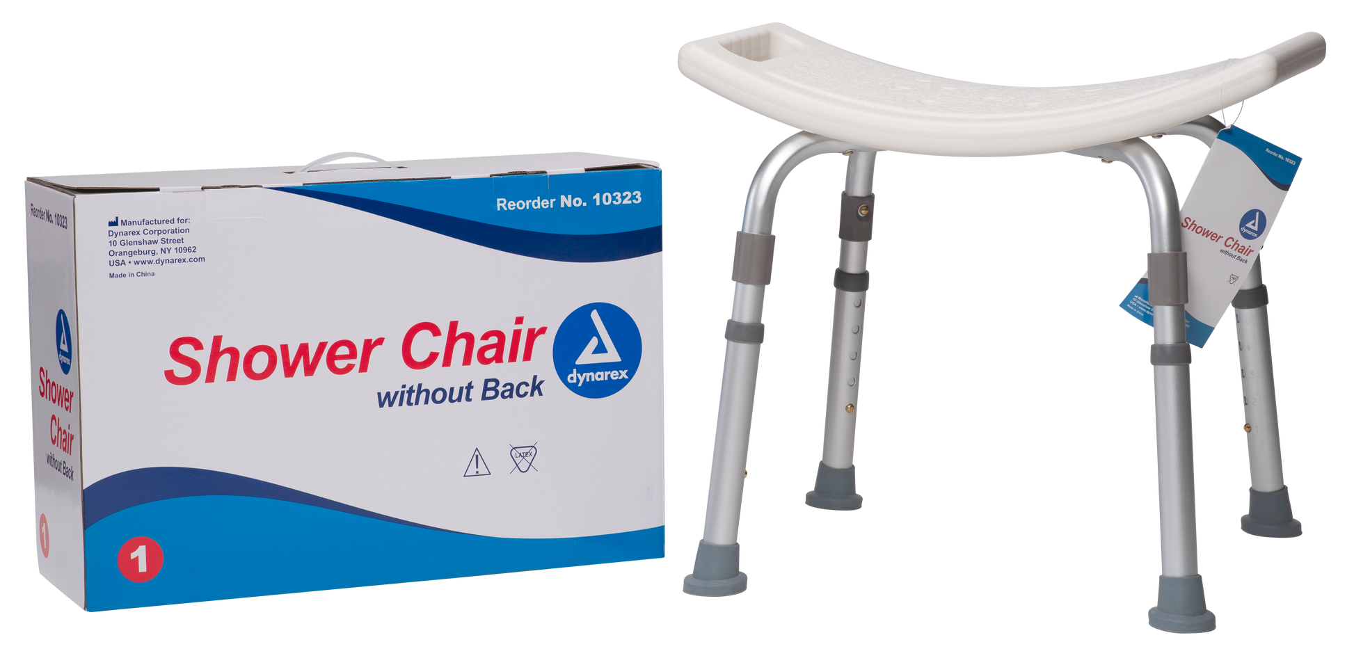 The Dynarex Shower Chair without Back is made of durable blow-molded plastic, with a lightweight corrosion proof aluminum frame. This shower chair has angled legs that are easily assembled with a tool-free design, complete with rubber tips for added stability during use. The seat has holes to allow for drainage and built in handles to reduce the risk of slipping during use.