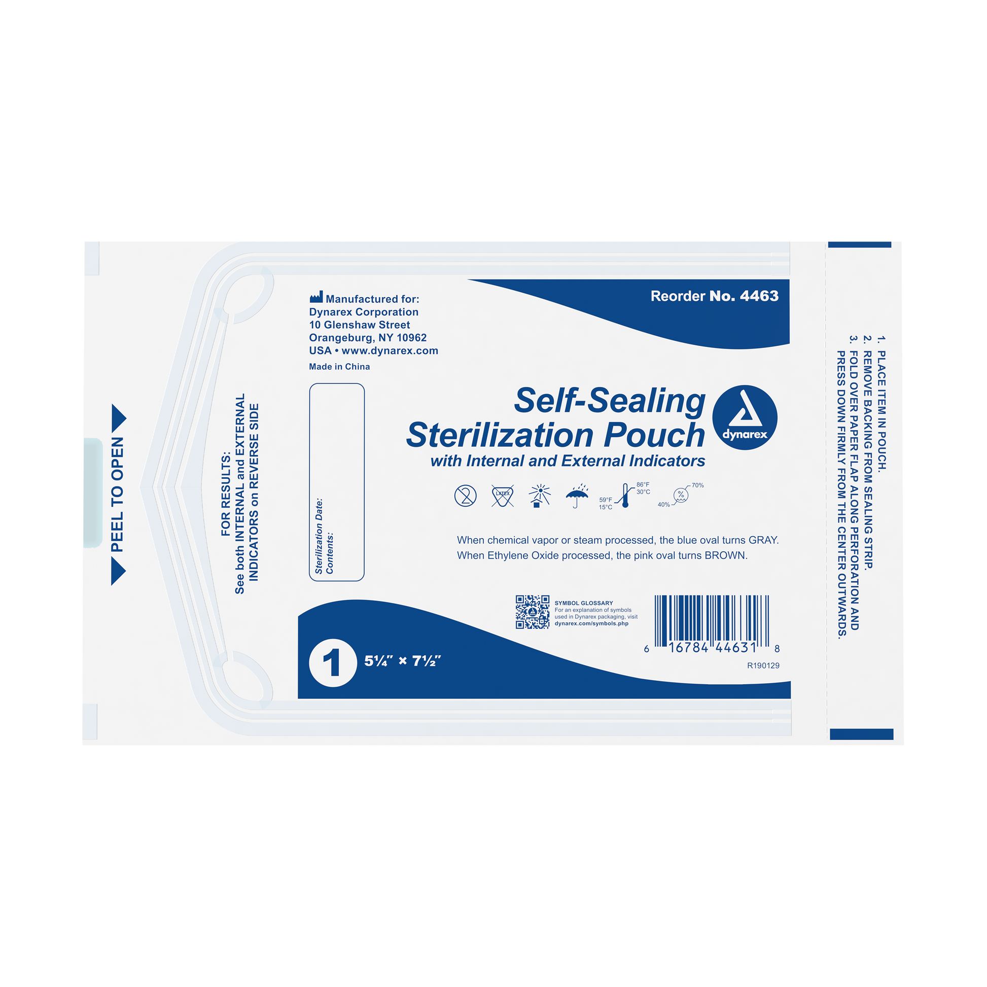 The Dynarex Sterilization Pouches have a blue tinted cover making it easy to detect contamination. The sterilization pouches are self-sealing and have color-changing indicators to assure proper sterilization.
