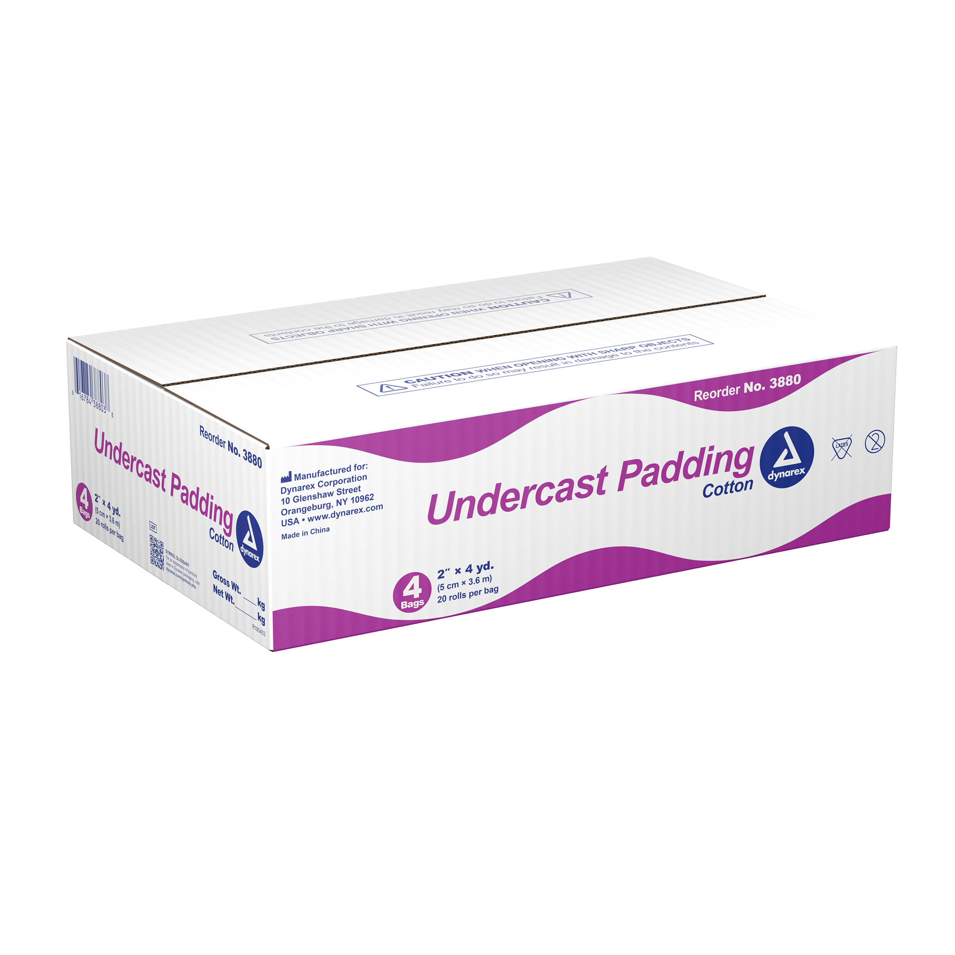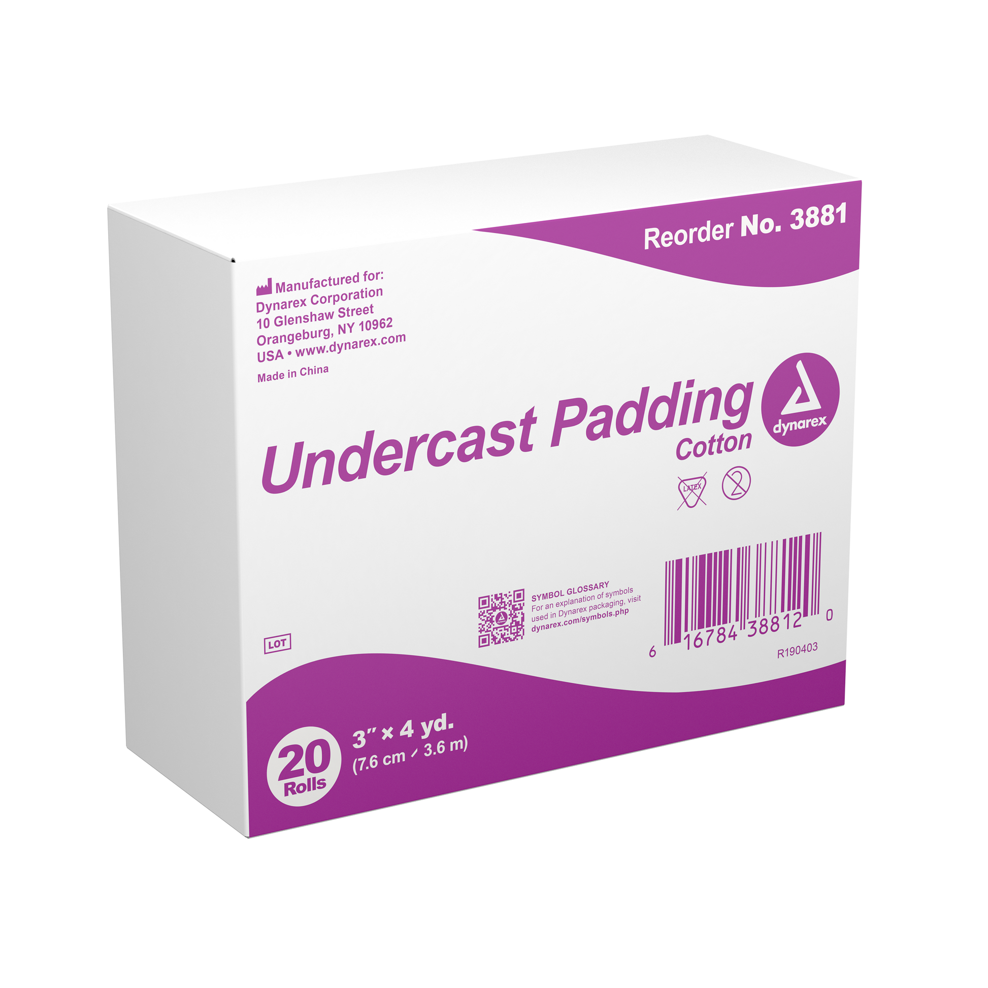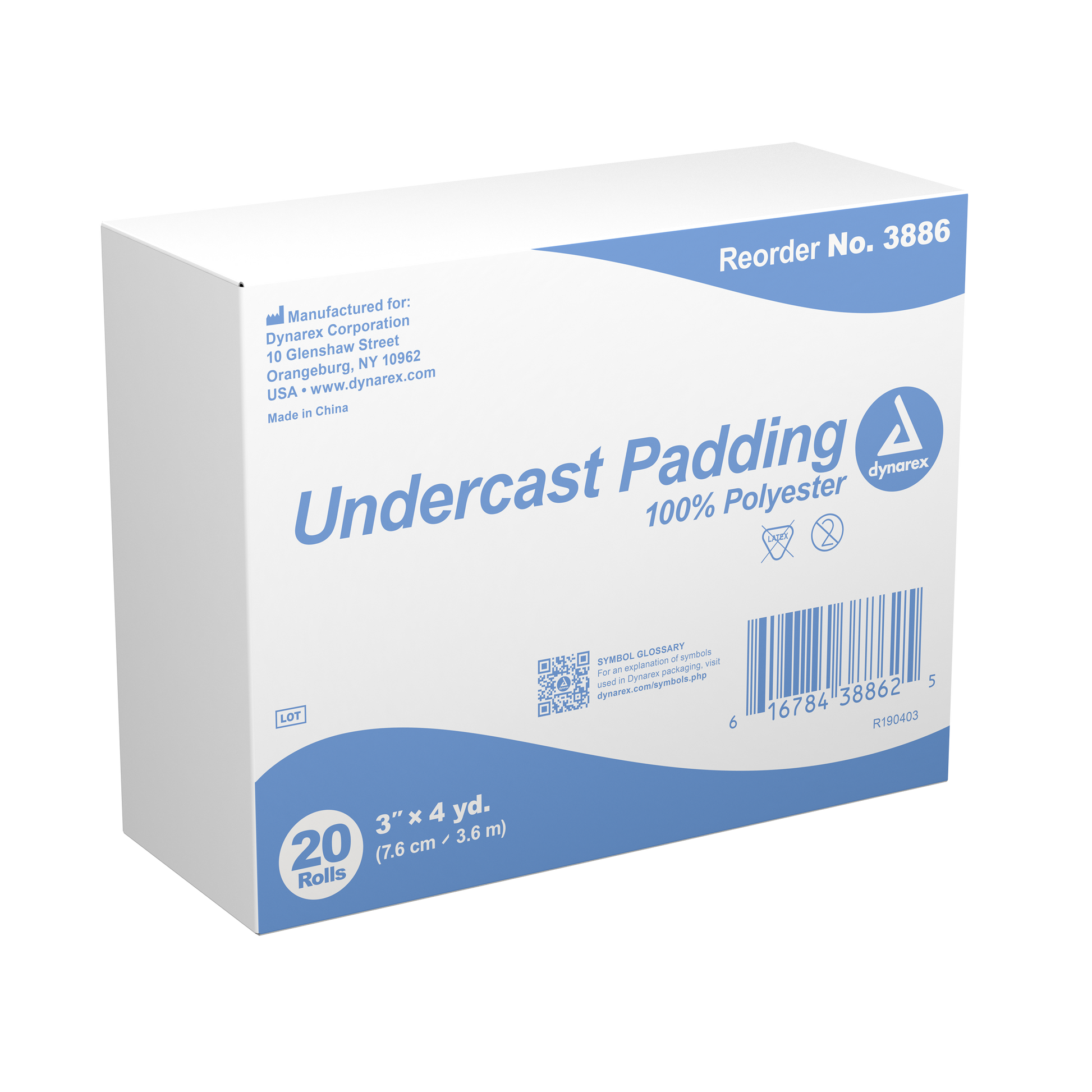 Dynarex Undercast Padding is constructed of both 100% Cotton and Polyester, providing a consistent and comfortable cast fit for patients. The undercast padding has a light stretch, making it easy to conform around all body contours.