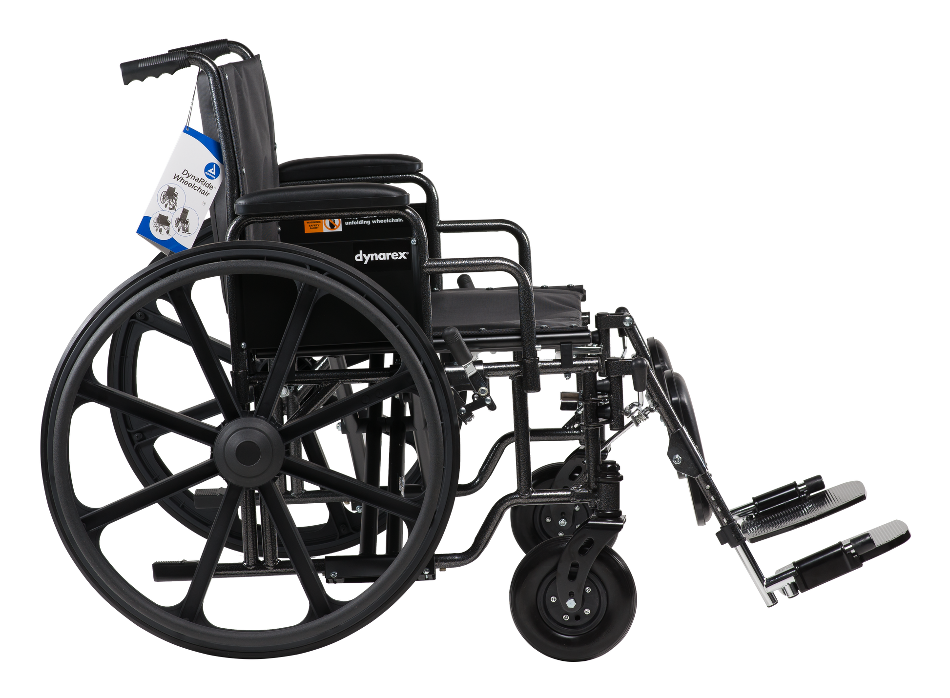 The DynaRide Heavy Duty Plus Wheelchairs are constructed of a heavy-duty steel frame with a dual cross bar for extra support these wheelchairs are dependable and perfect for long-term use. A long-lasting powder coated silver finish and black-padded nylon upholstery with chart pocket on the backrest makes this wheelchair convenient, attractive and easy to clean. Inclusive of detachable arms with padded arm rests tool-free adjustable elevating leg rests with padded calf pads, as well as an optional heavy-duty leg rest with extra wide foot plate with padded calf pads, making them extremely versatile.
