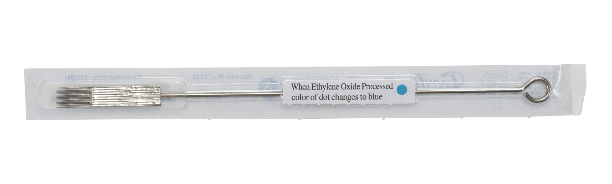 - Each needle is sterilized and individually wrapped in blister packs with an EO gas proof strip indicator.
