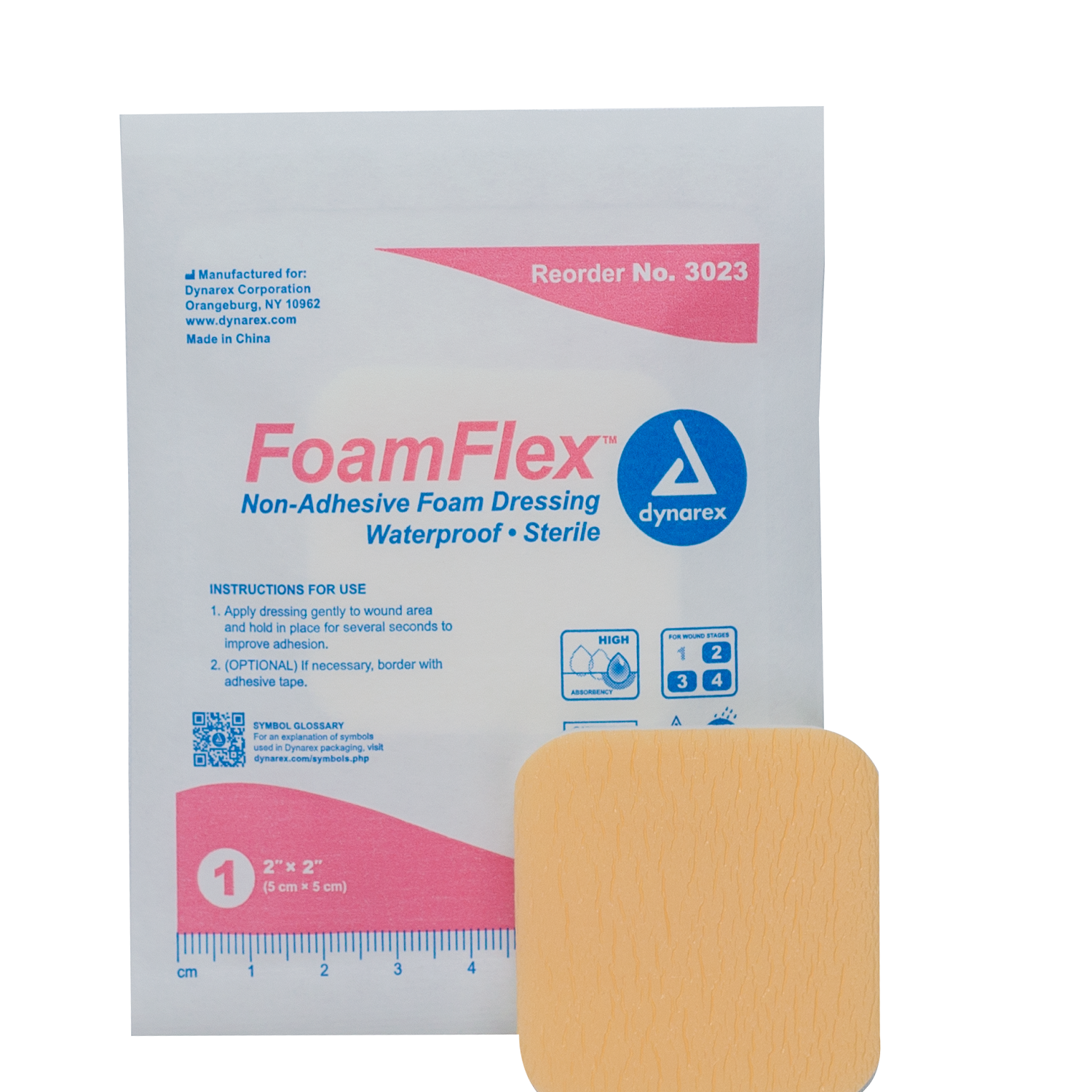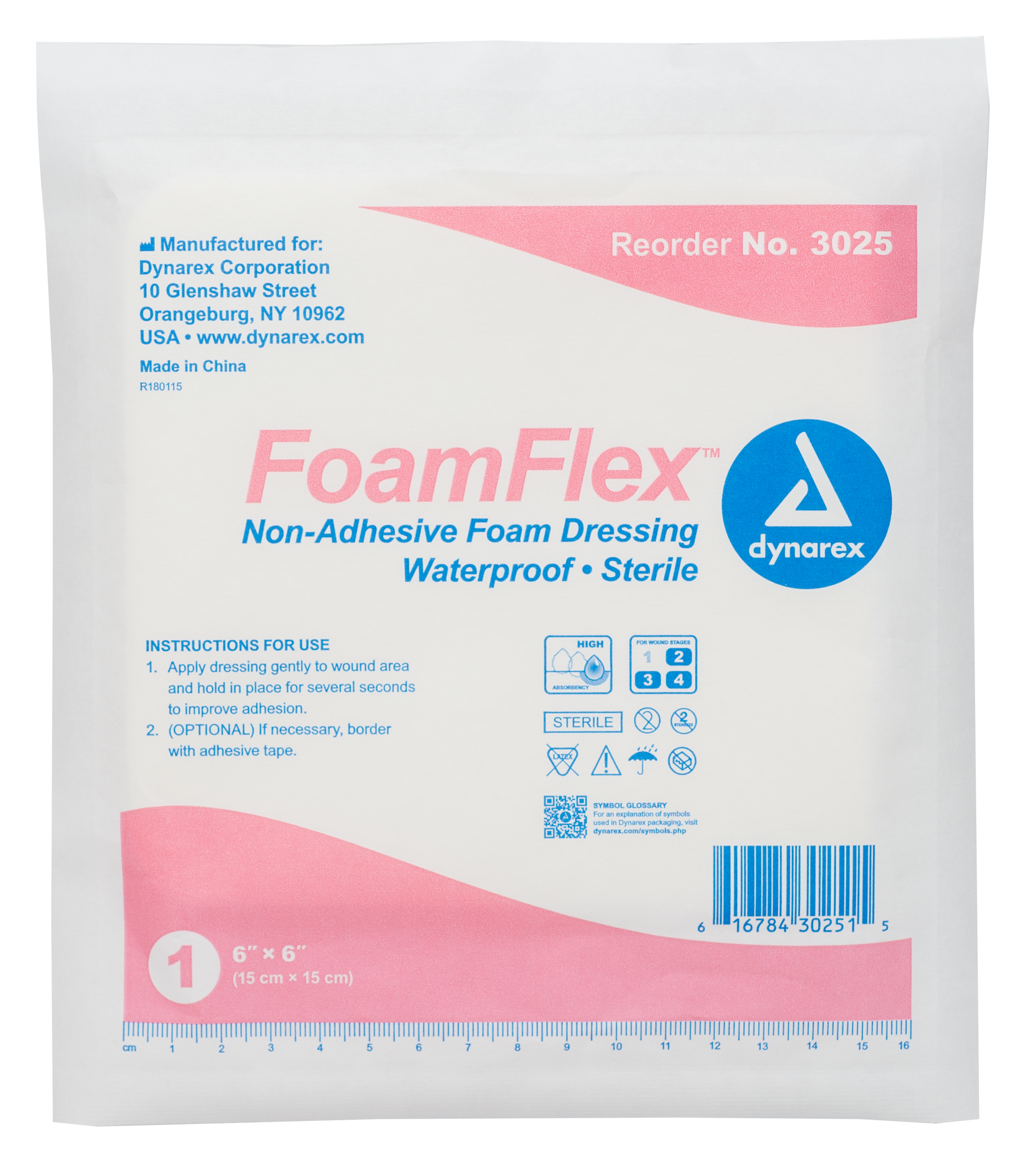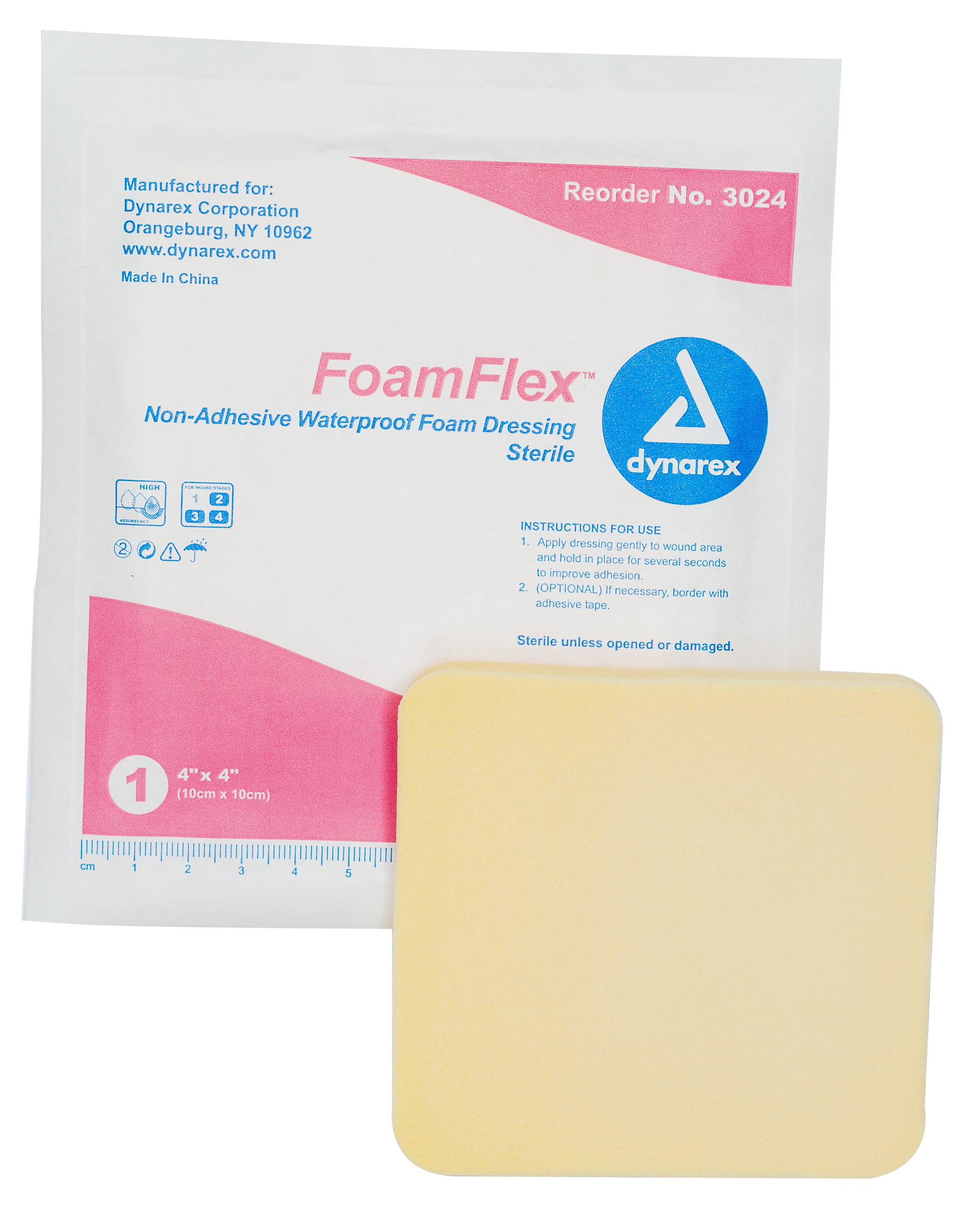 Dynarex’s FoamFlex Non-Adhesive Waterproof Foam Dressing maintains a sterile, comfortable, warm, moist wound environment to help protect against contamination, reduce pain and promote faster healing. The dressing is designed with a semi-permeable film to let oxygen through while preventing bacterial contamination.