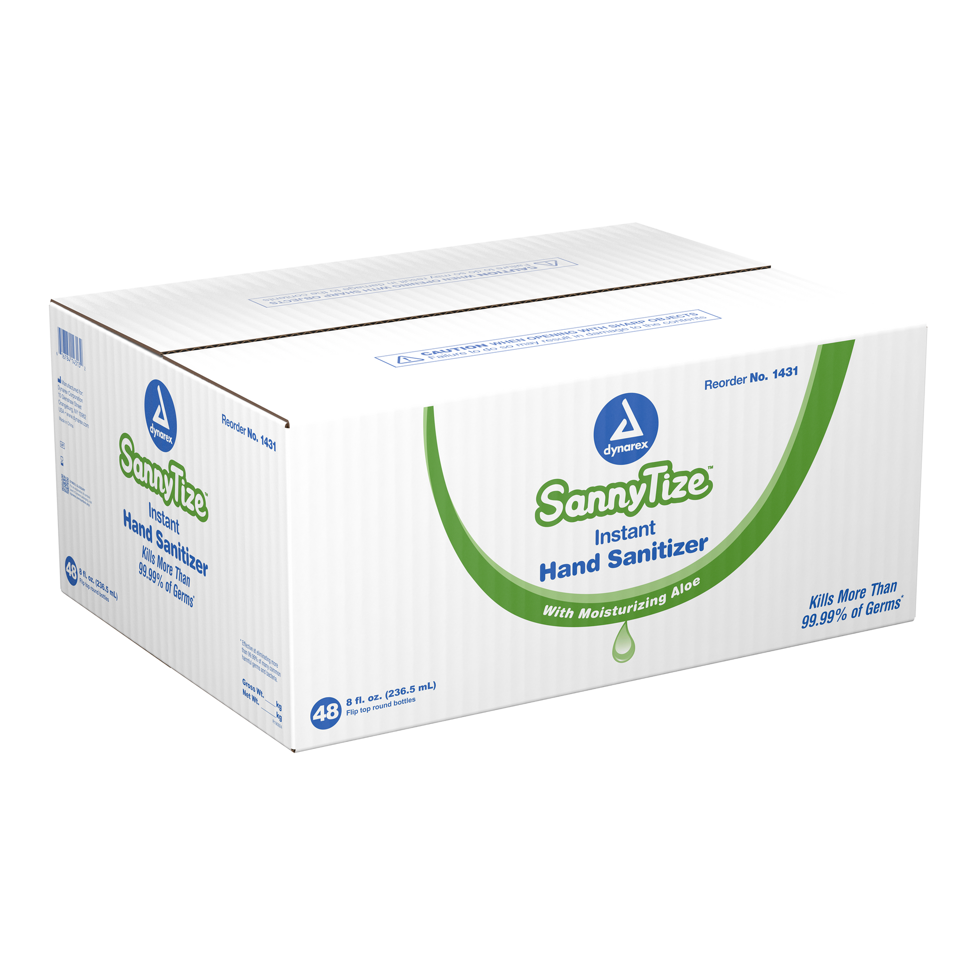 Sannytize Instant Hand Sanitizer eliminates more than 99% of germs and bacteria and evaporates completely without leaving hands feeling sticky. The Dynarex Sannytize instant hand sanitizer contains aloe to help soothe and moisturize the skin. Available in convenient packaging options, making it ideal for use from first aid kits and purses, to hospitals, offices and schools.