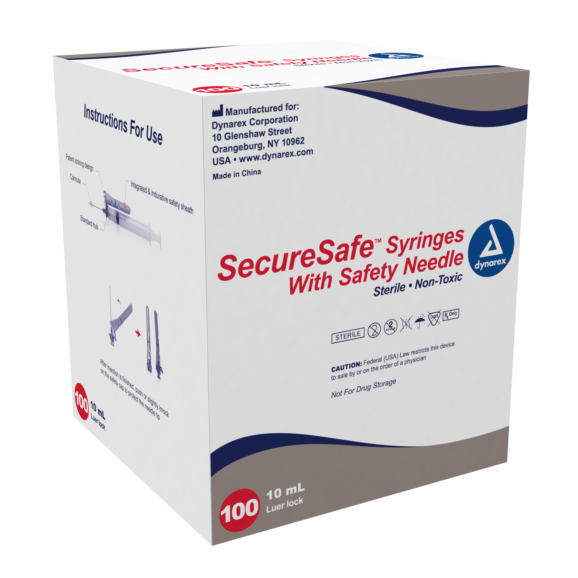 The Dynarex SecureSafe Syringes with Safety Needle are designed with a safety engineered mechanism to provide a comfortable, effective way to deliver medication or draw blood, while protecting the users from accidental needlesticks.