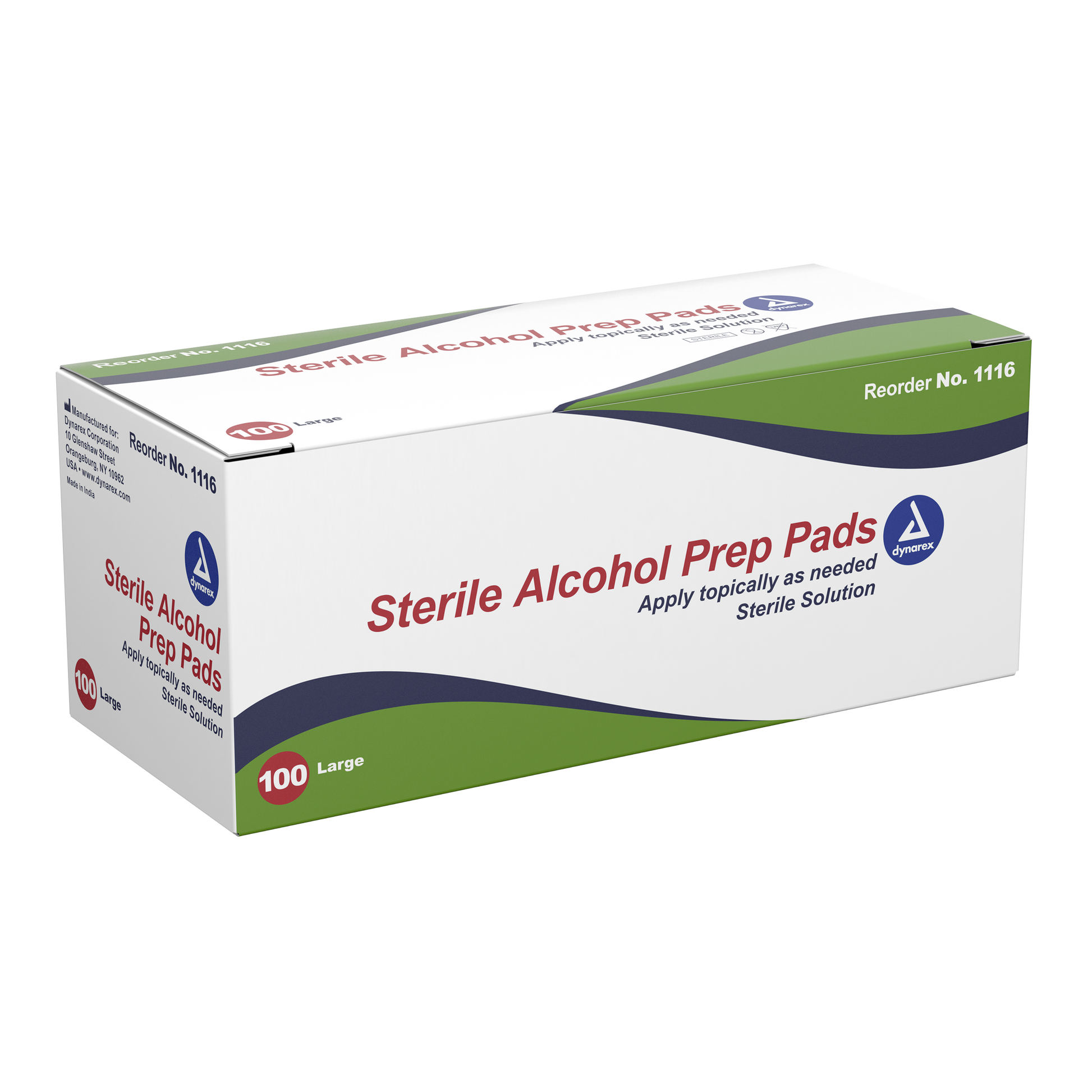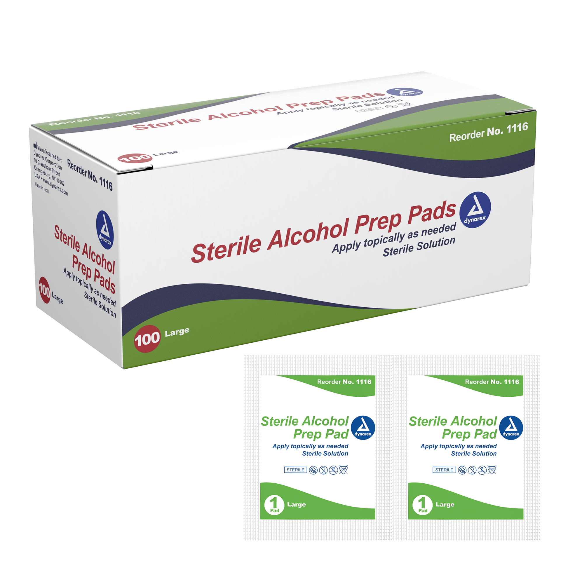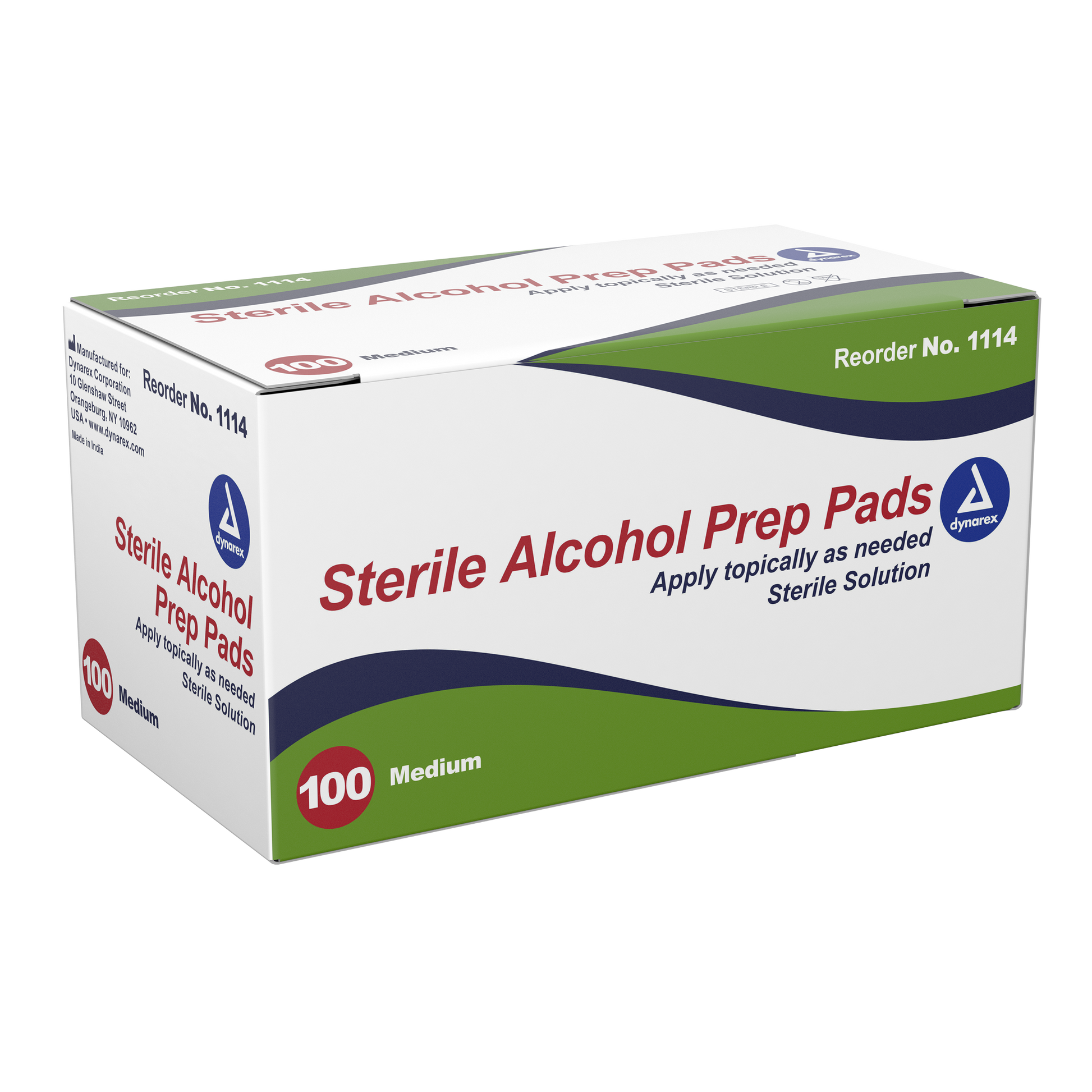 Dynarex Sterile Alcohol Prep Pads are 1-ply prep pads and are a great antiseptic source for prepping skin prior to injections. These alcohol wipes contain 70 percent isopropyl alcohol.